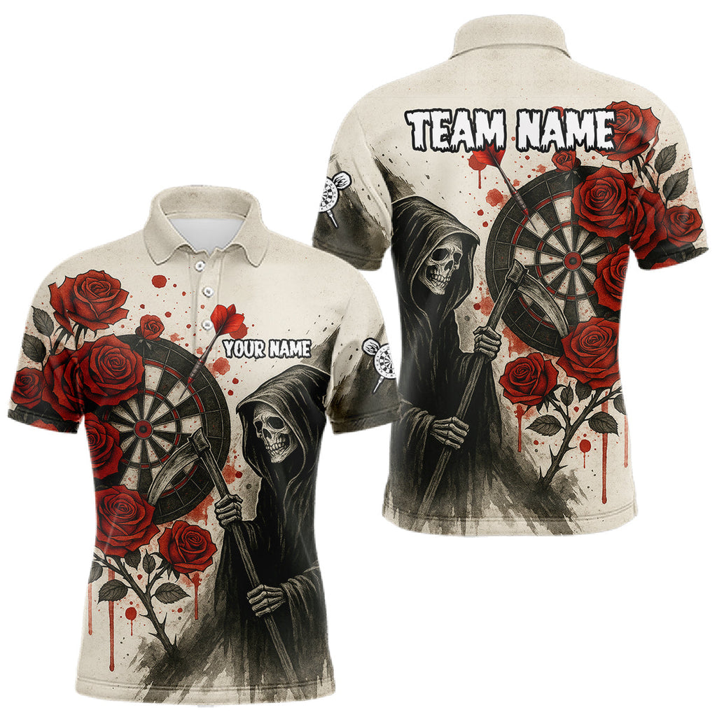 Maxcorners Custom Red Grunge Roses Grim Heaper Dartboard Dart Polo Shirt For Men Dart Team Jerseys LM0210