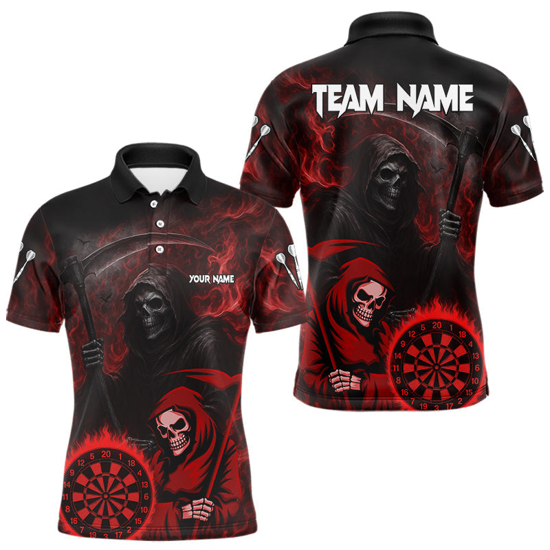 Maxcorners Custom Red Smokes Flame Dartboard Grim Reaper Dart Men Polo Jerseys Dart Team Shirt TU1410