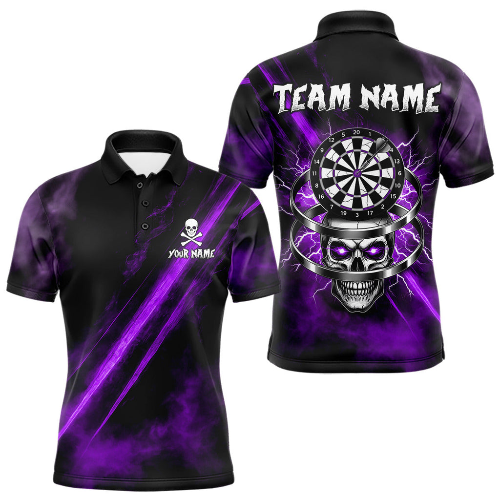 Maxcorners Custom Silver Skull Dartboard Lightning Purple Dart Men Polo Jerseys Outfits Dart Shirt MT1810
