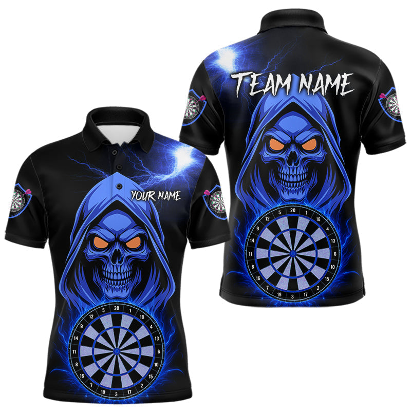 Maxcorners Custom Skeleton Blue Flames Dartboard Dart Men Polo Jerseys Outfits Dart Team Shirt TU1410