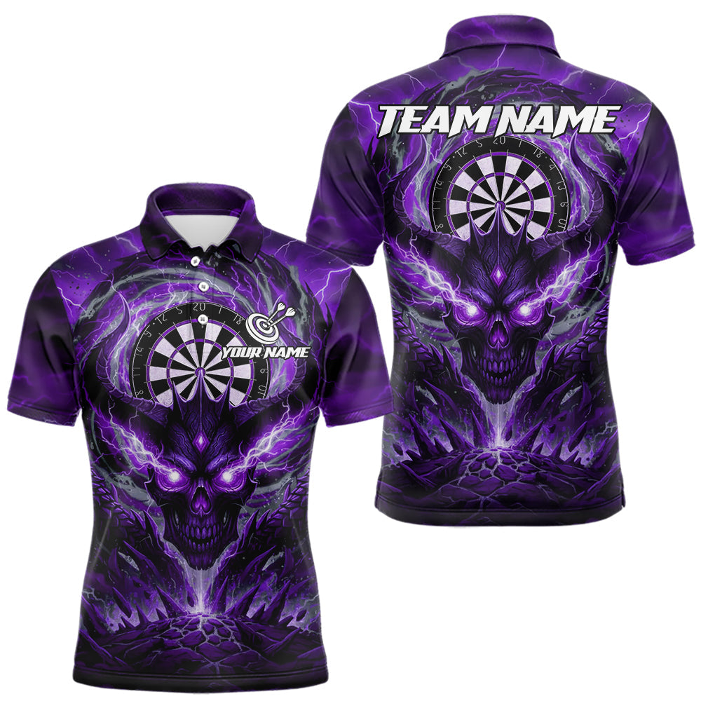 Maxcorners Lightning Purple & Grey Dragon Skull Dartboard Custom Men Darts Polo Shirt, Dart Jerseys MT0111