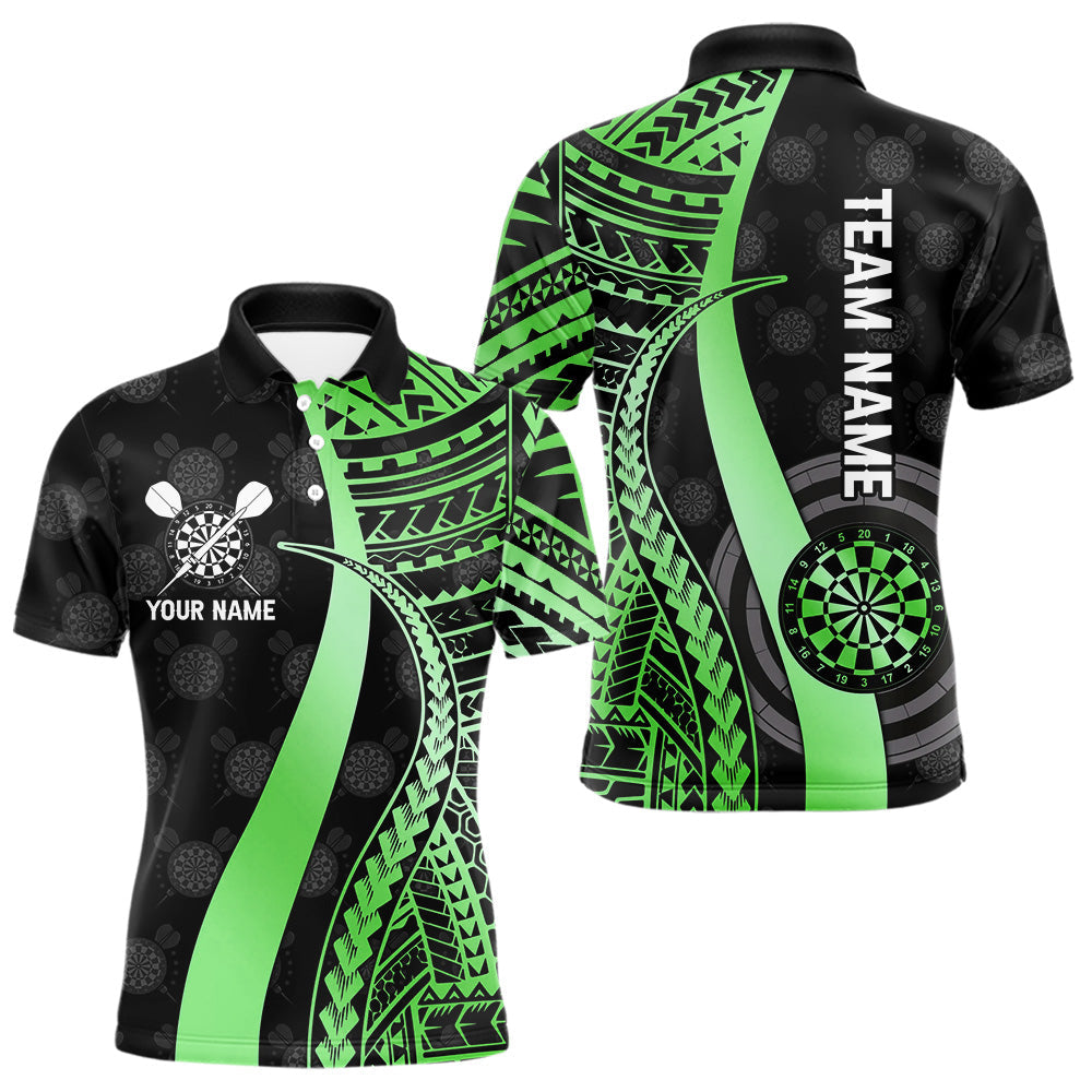 Maxcorners Personalized Black And Green Tribal Dart Shirts For Men Custom Darts Jersey Team Polo & 1/4 Zip LM0210