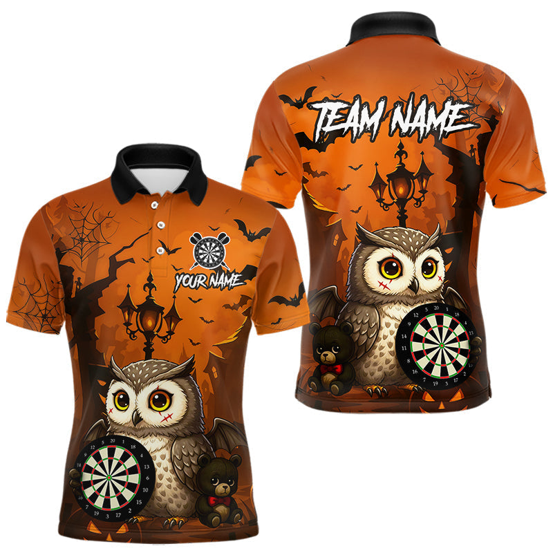 Maxcorners Personalized Orange Funny Owl Halloween Darts Shirt For Men Custom Pumpkin Darts Jersey LM0210