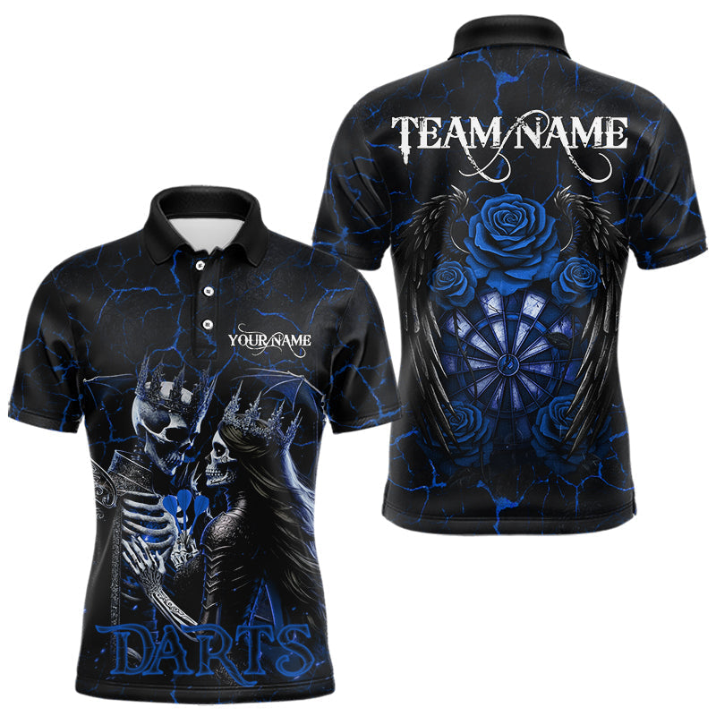 Maxcorners Personalized Skeleton Couple And Roses Gothic Darts Shirt For Men Custom Dart Jersey Outfit
