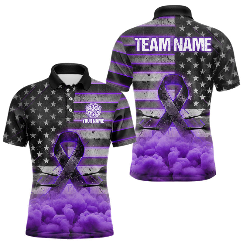 Maxcorners Purple Cloud Ribbon US Flag Dart Arrow Custom Breast Cancer Awareness Darts Men Polo Shirt MT0111