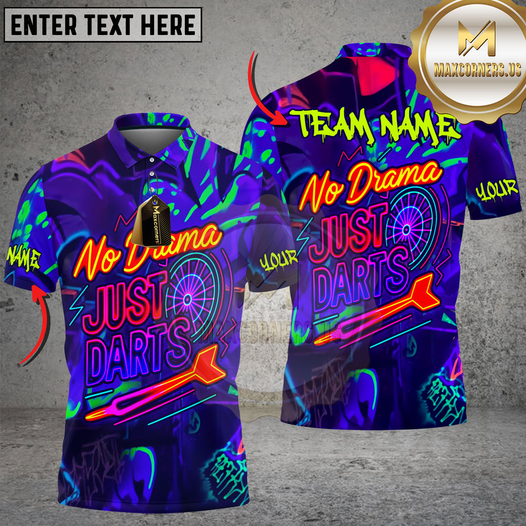Maxcorners Darts No Drama Just Darts Neon Style Personalized Name 3D Unisex Shirt