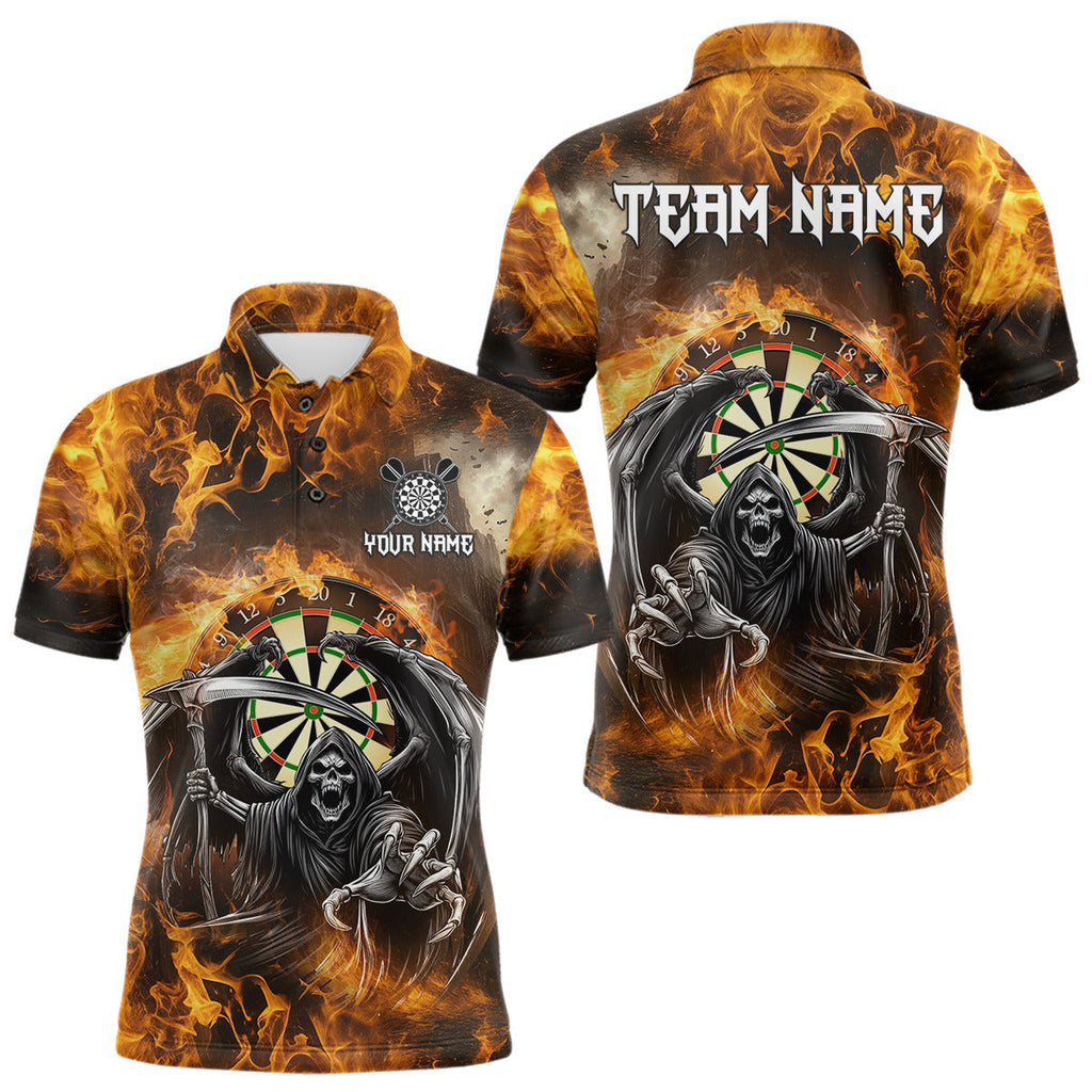 Maxcorners Personalized Orange Flaming Grim Reaper Darts Shirt For Men Custom Fire Darts Team Jersey LM0910
