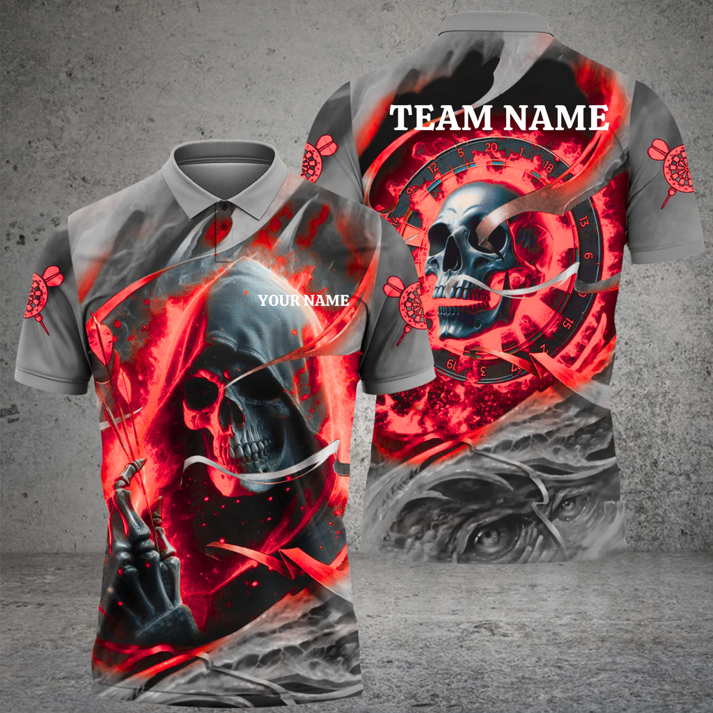 Maxcorners Darts Skull Customized Name, Team Name 3D Polo Shirt