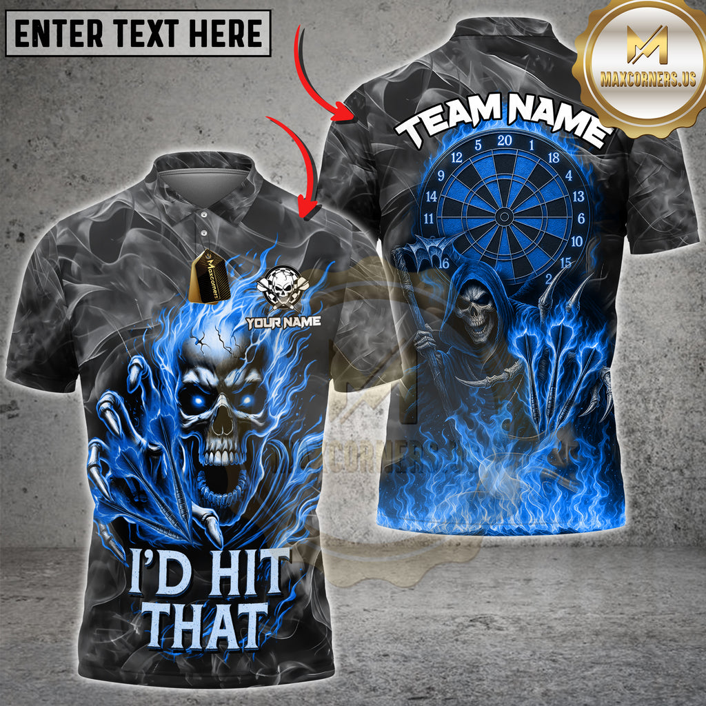 Maxcorners Flame Skull "I'd Hit That" Multicolors Customized Name, Team Name 3D Shirts (4 Colors)