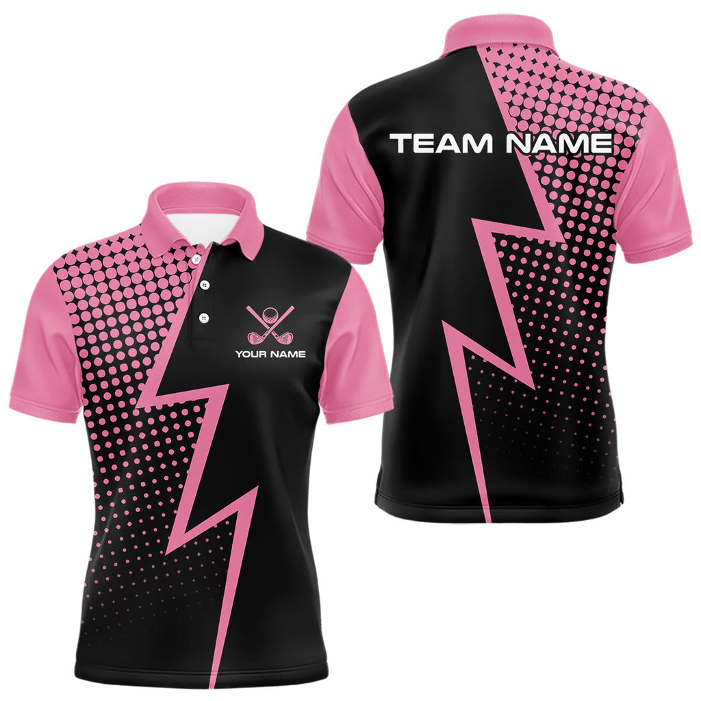 Maxcorners Black and Pink dots pattern Lightning Golf polo shirts for Men custom golf top for men LM1610