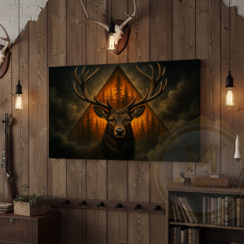Maxcorners Deer with Forest Triangle Background Wrapped Canvas