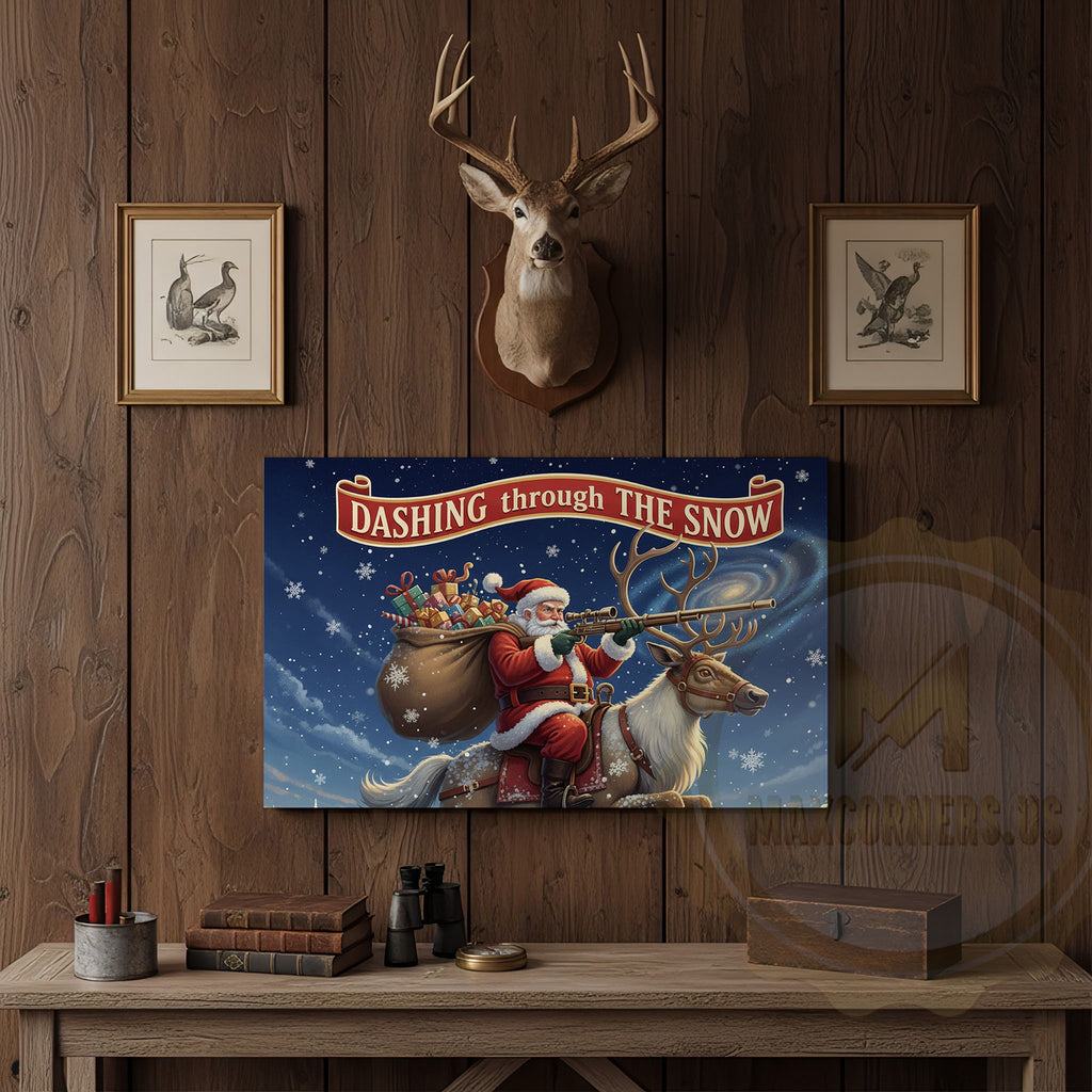 Maxcorners Santa Riding Reindeer Dashing Through the Snow Wrapped Canvas