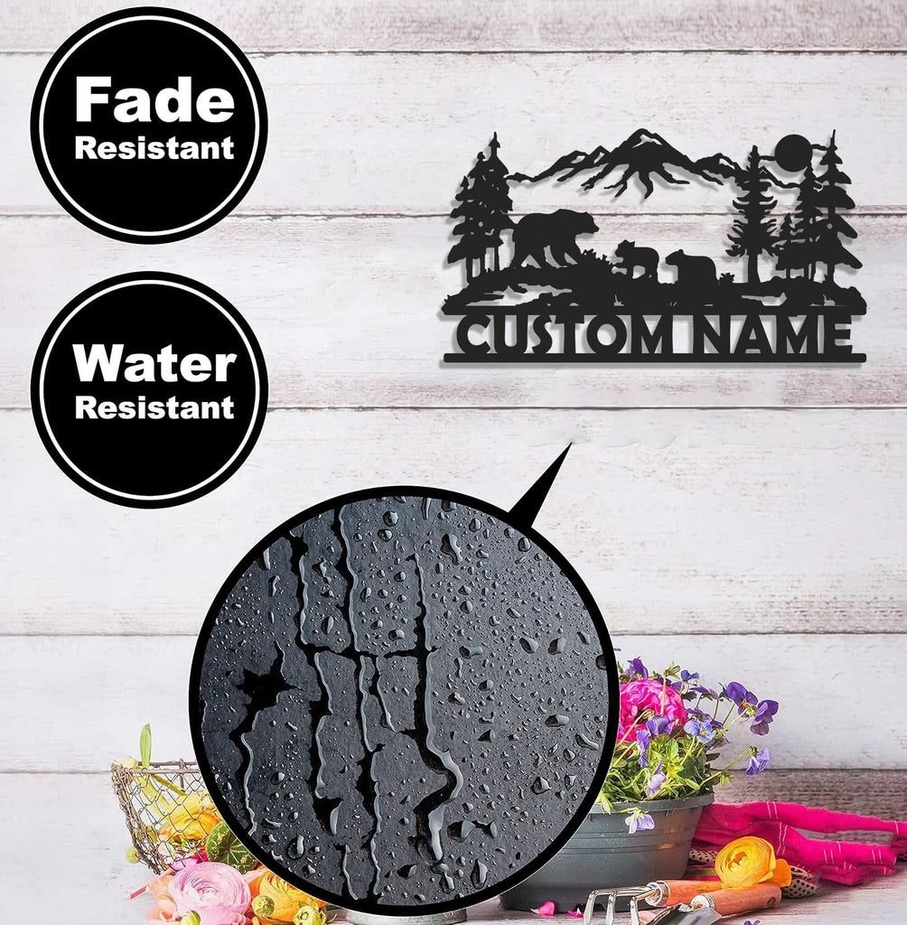Maxcorners Personalized Bear Family Metal Sign WITH LED/WITHOUT LED - Mountain Cabin Name Sign, Rustic Wildlife Wall Art for Lodge & Outdoor Decor LM0110