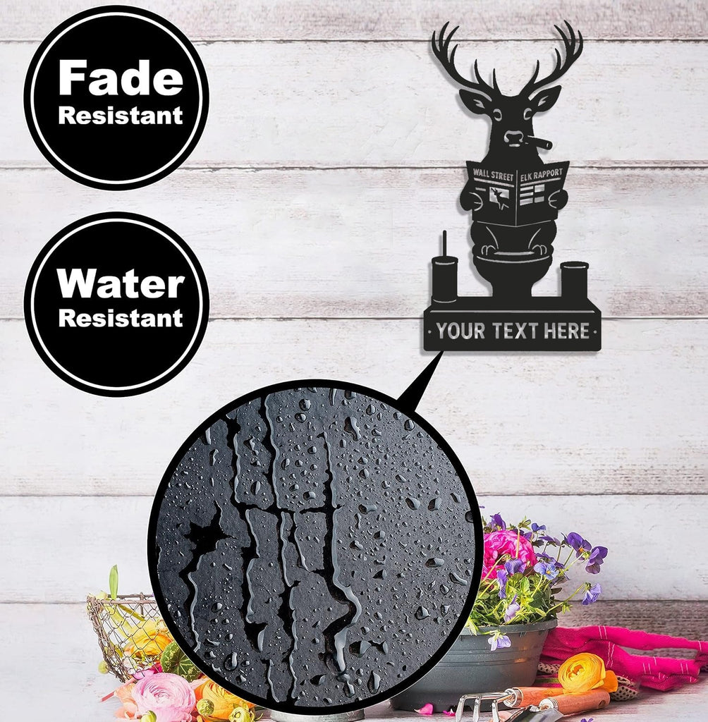 Maxcorners Personalized Deer Bathroom Humor Metal Sign WITH LED/WITHOUT LED, Rustic Hunting Cabin Wall Decor for Hunters, Funny Wildlife Toilet Art LM0110