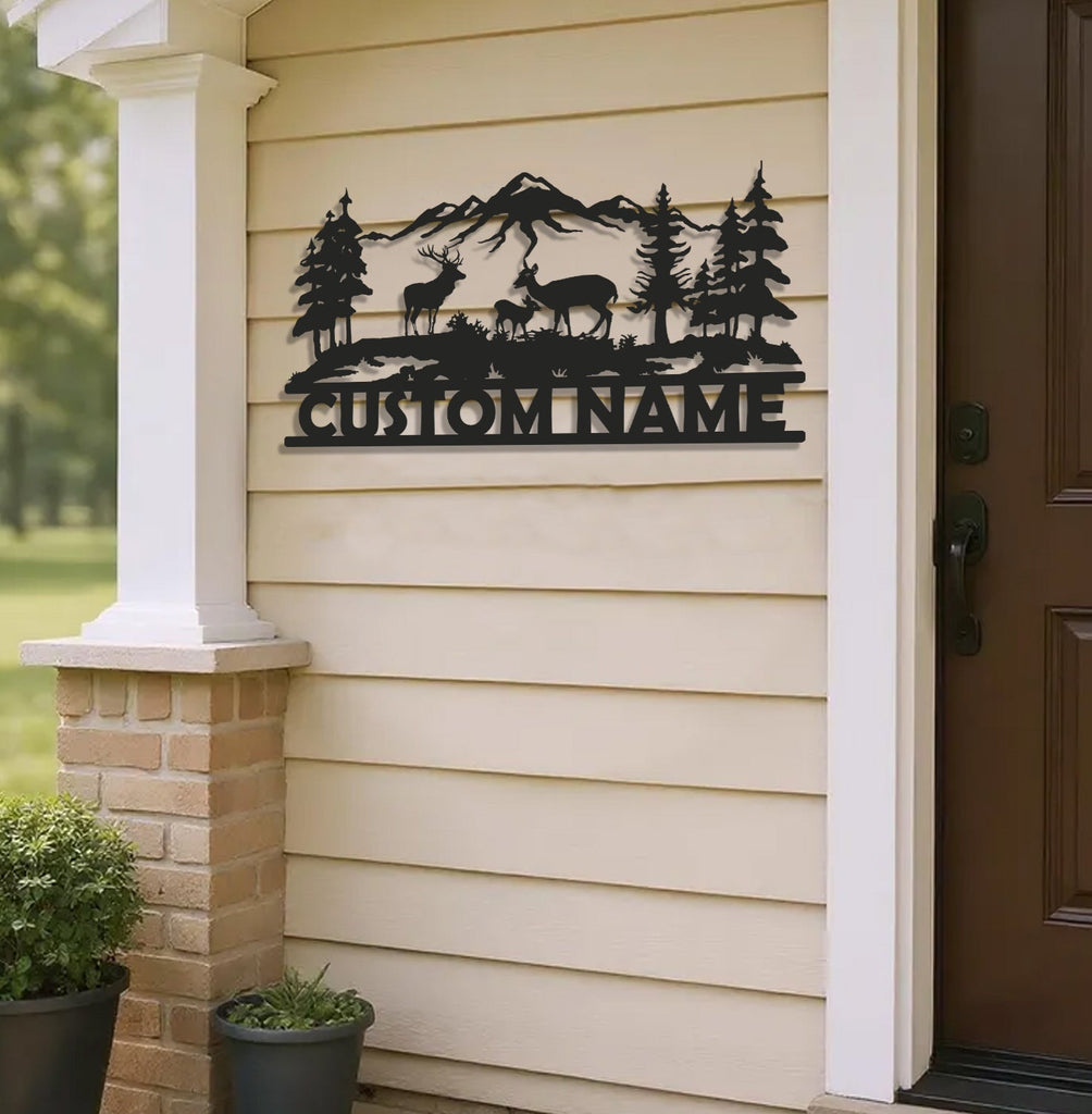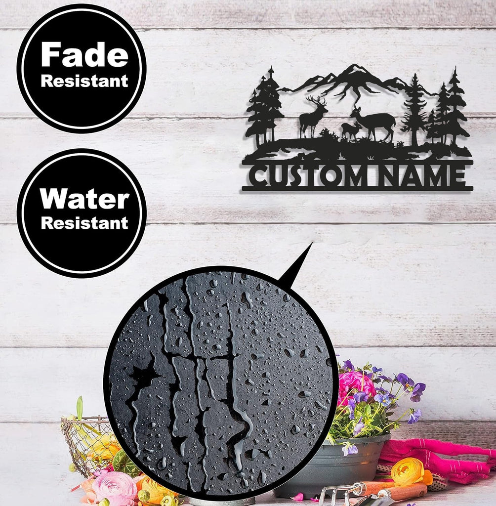 Maxcorners Personalized Deer Family Metal Sign WITH LED/WITHOUT LED - Rustic Cabin Name Sign, Mountain Wildlife Wall Art for Lodge & Outdoor Decor LM0110