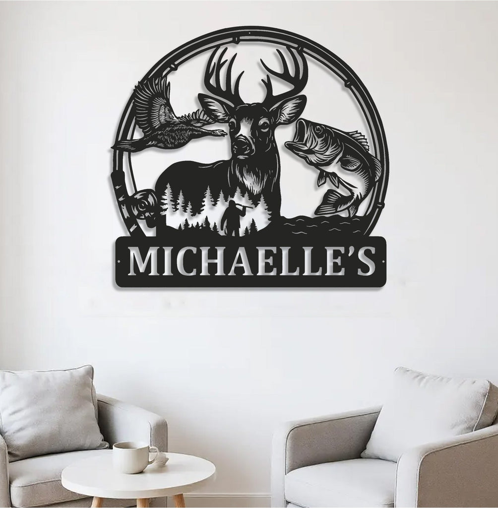 Maxcorners Personalized Hunting Metal Sign WITH LED/WITHOUT LED - Deer, Duck & Fish Wildlife Wall Art, Rustic Cabin Decor for Hunters LM0110
