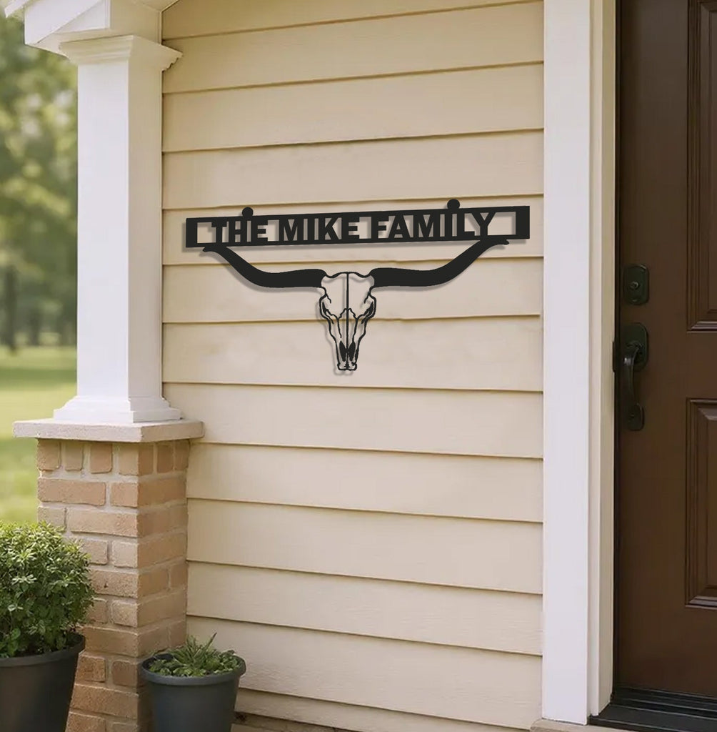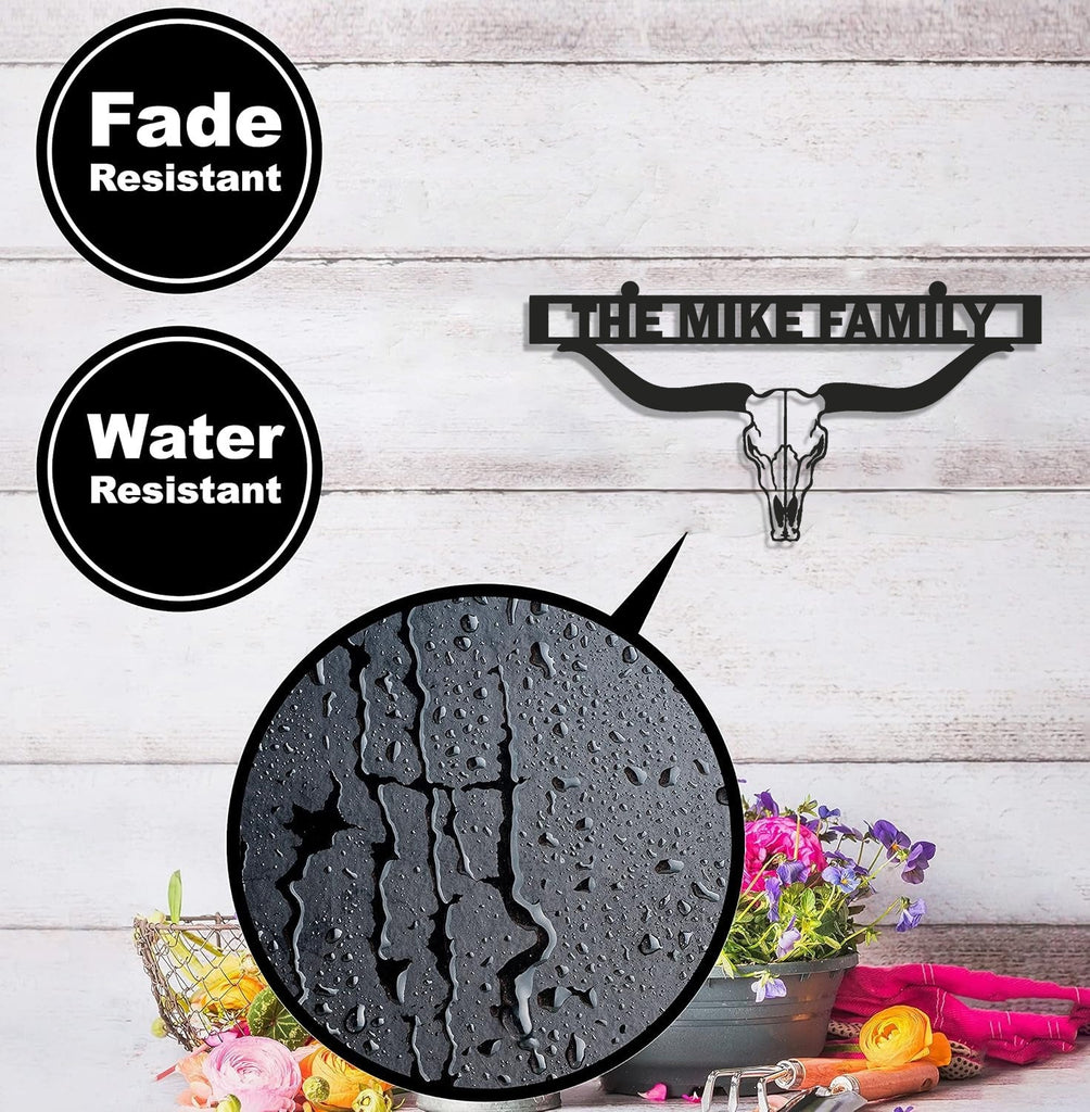 Maxcorners Personalized Metal Ranch Sign WITH LED/WITHOUT LED – Western Longhorn Skull Cowboy Decor LM0110