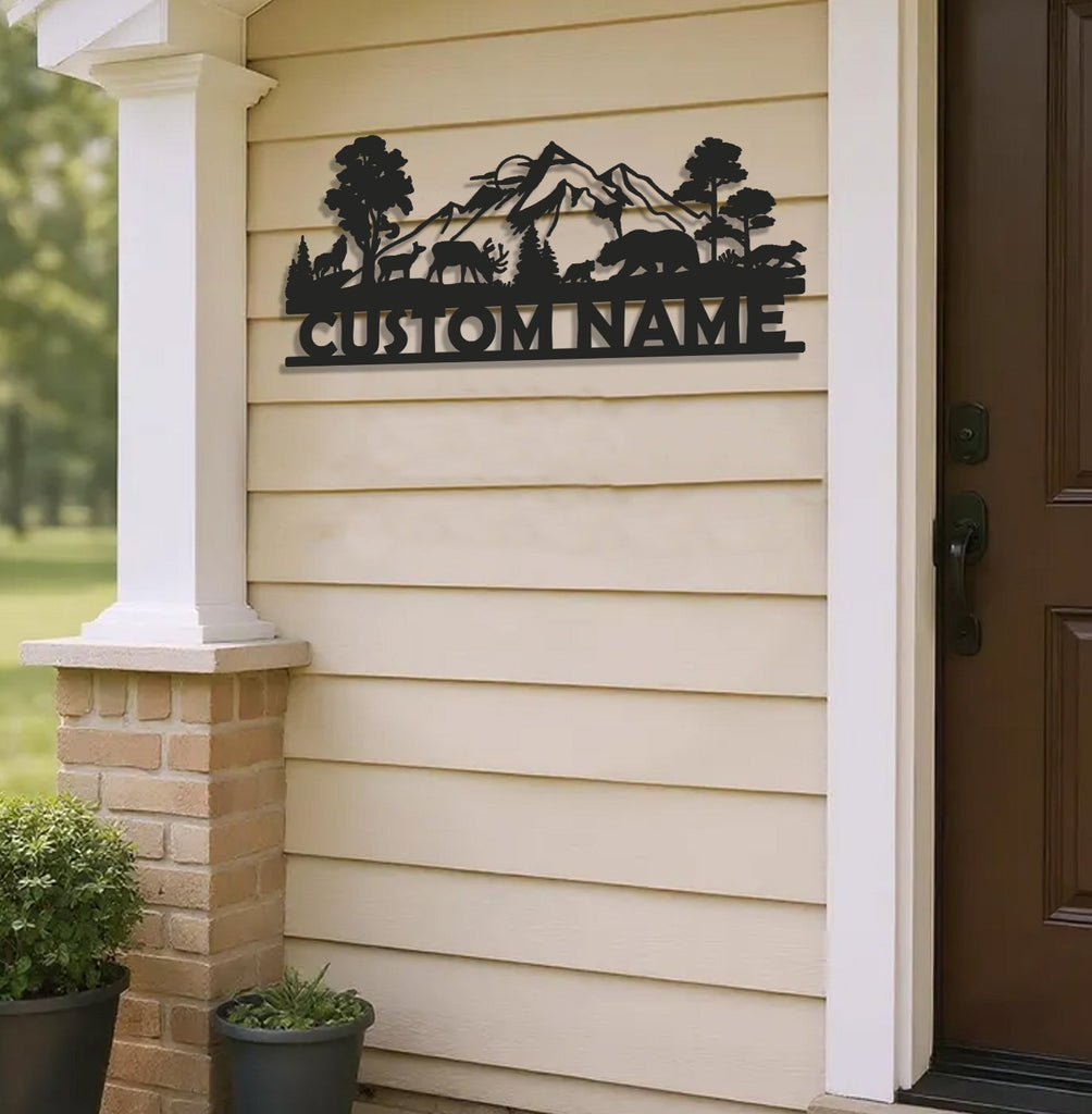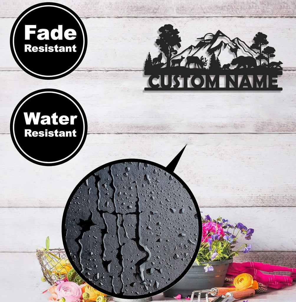 Maxcorners Personalized Wildlife Metal Sign WITH LED/WITHOUT LED - Rustic Cabin Name Sign with Deer & Bear, Mountain Lodge Outdoor Wall Art LM0110