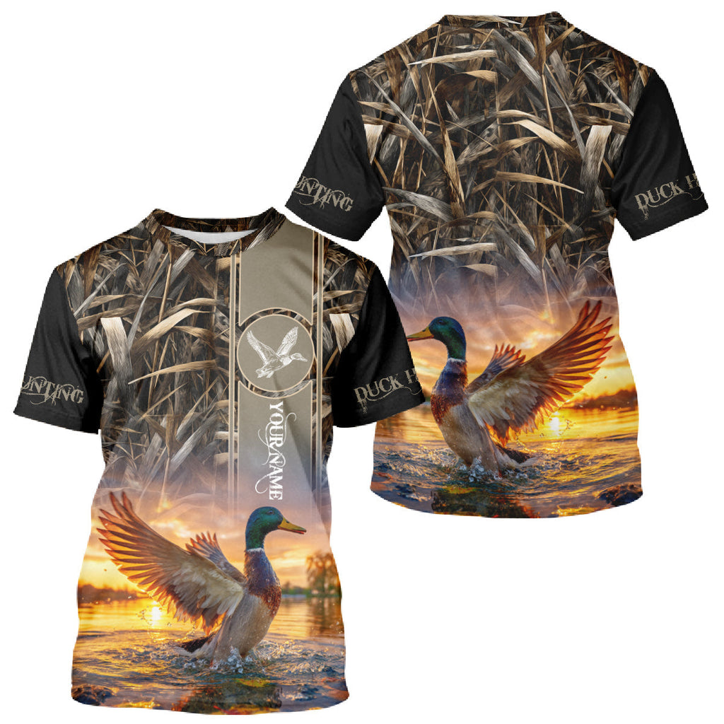 Maxcorners Mallard Duck Hunting Shirt Waterfowl Camo Custom Name Shirts, Personalized Hunting Clothes LM1109