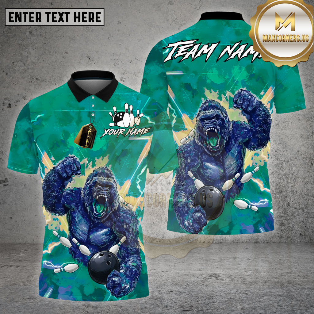 Maxcorners Bowling Shirt Lightning Gorilla Power Strike Multioptions Personalized Name, Team Name Unisex 3D Shirt