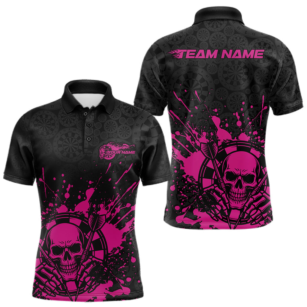 Maxcorners Custom Black And Pink Splatter Dart Skull Men Polo Shirt, Dart Bone Halloween Team Jerseys LM0210