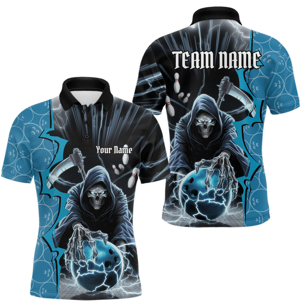 Maxcorners Custom Blue Thunder Lightning Grim Reaper Bowling Men Polo Shirt, Halloween Bowler Outfit LM1809