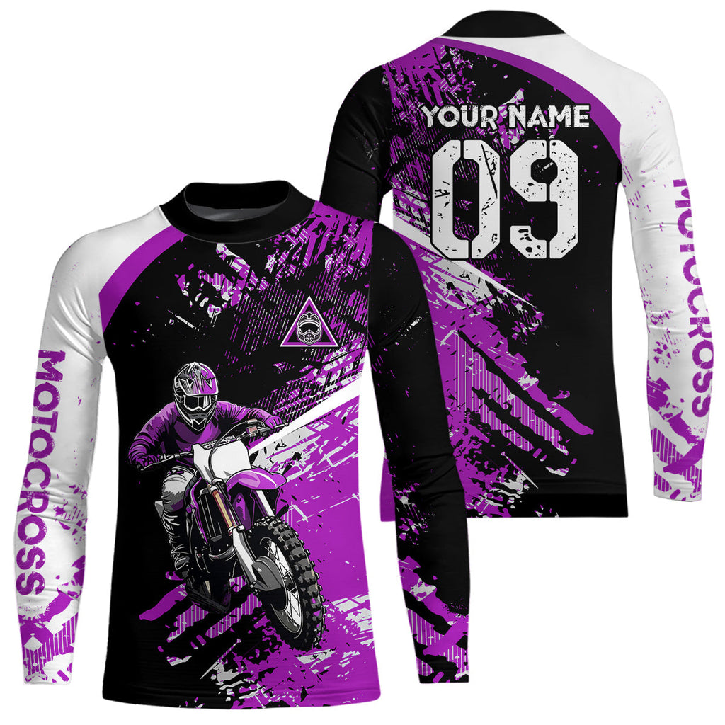 Maxcorners Adult&Kid Custom Motocross Jersey Purple UPF30+ MX Racing Biker Off-road Dirt Bike Racewear