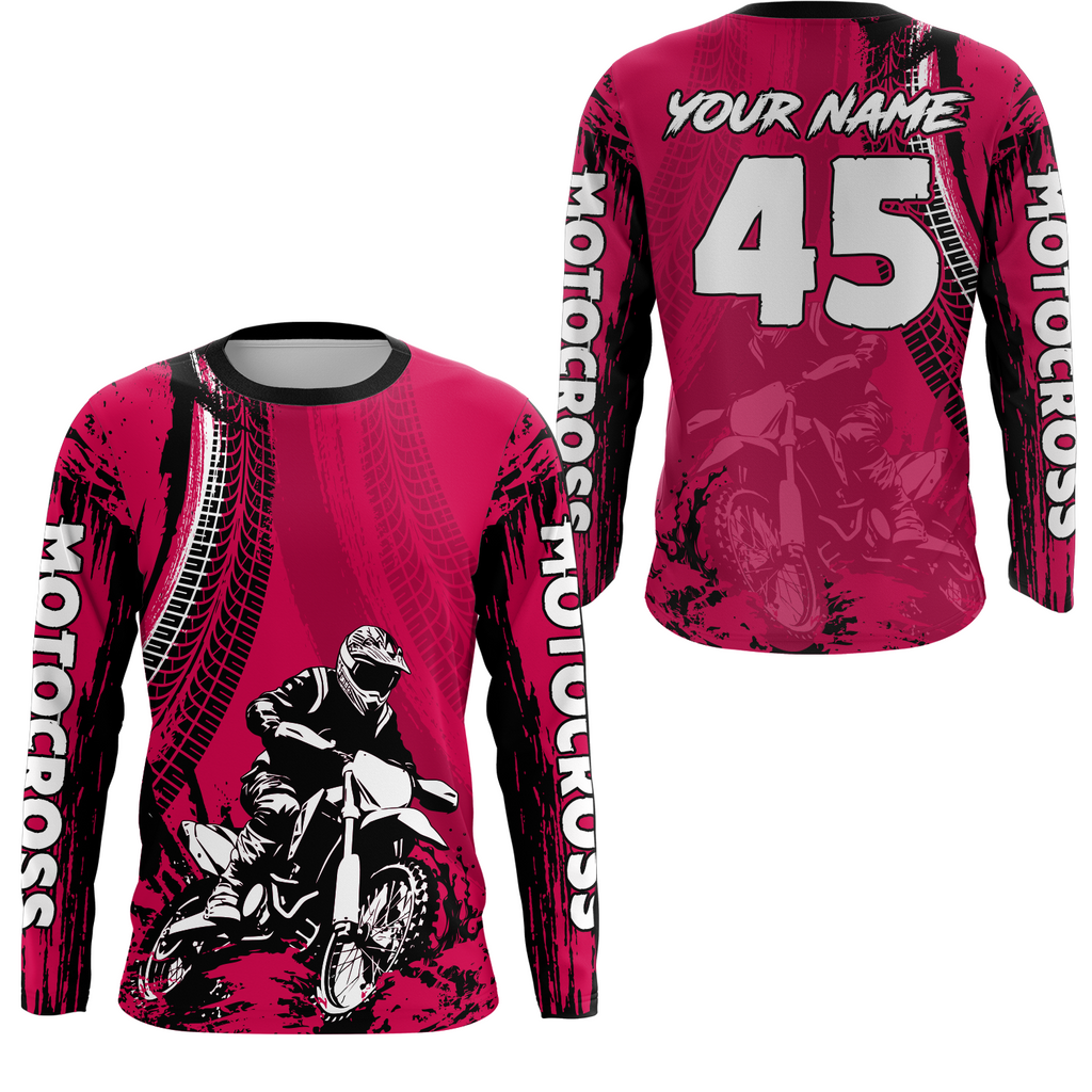Maxcorners Adult&Kid Pink Custom Motocross Jersey UPF30+ MX Racing Biker Off-road Dirt Bike Racewear