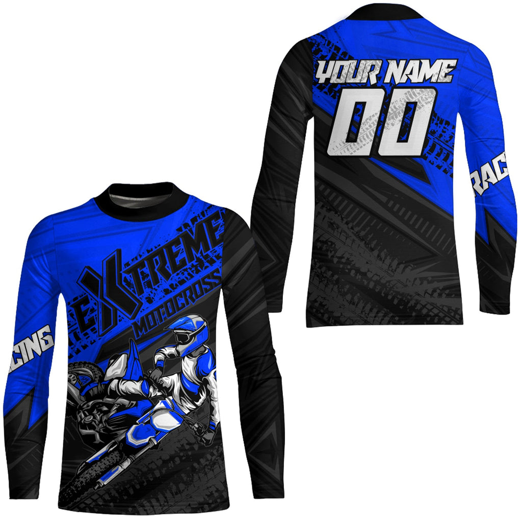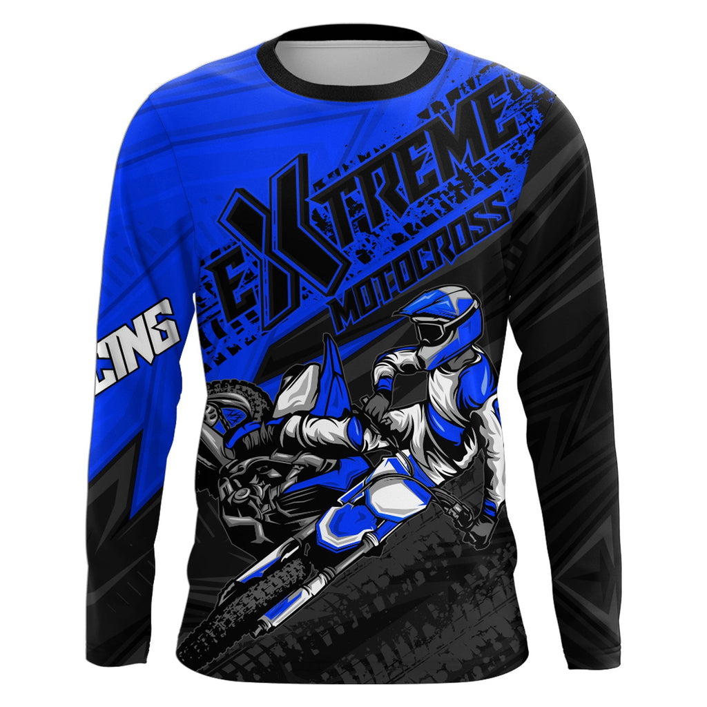 Maxcorners Blue Motocross Racing Jersey Upf30+ Kid Men Women Dirt Bike Shirt Off-road Jersey MT2709
