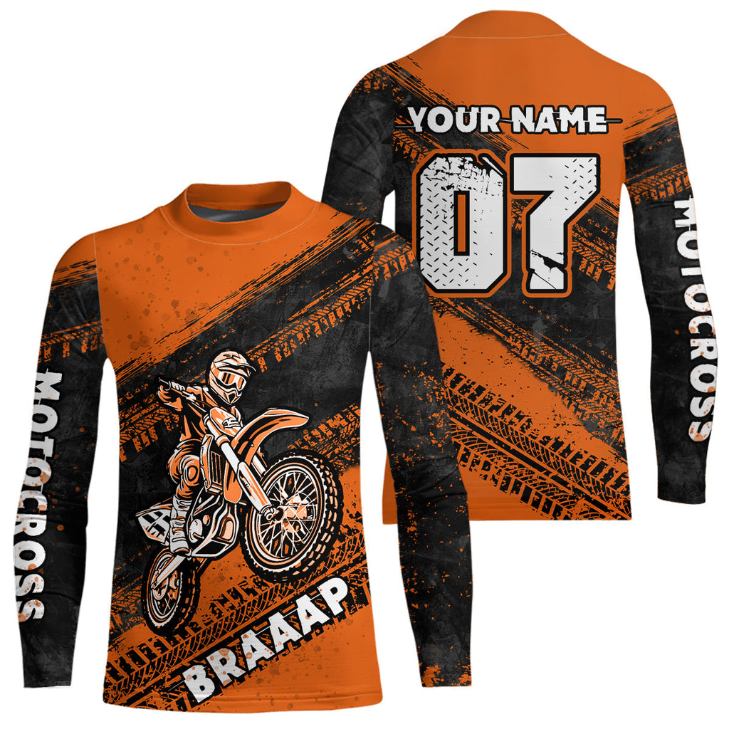 Maxcorners Custom Motocross Jersey Orange Mens Women Upf30+ Dirt Bike Jersey Racing Shirt