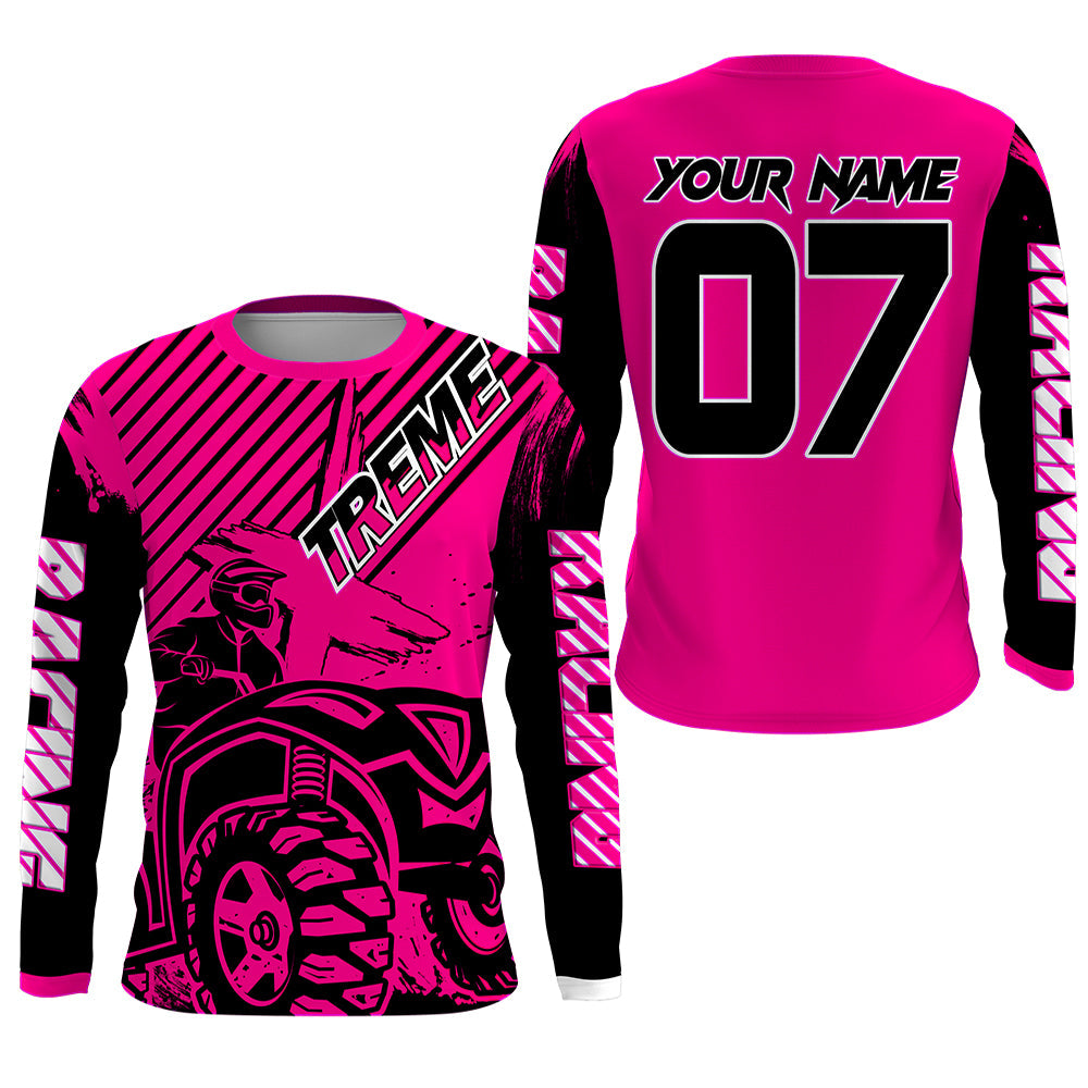 Maxcorners Custom Quad Bike Jersey Kid Men Women Upf30+ Pink ATV Motocross Shirt Extreme Rider PDT841 MT2809