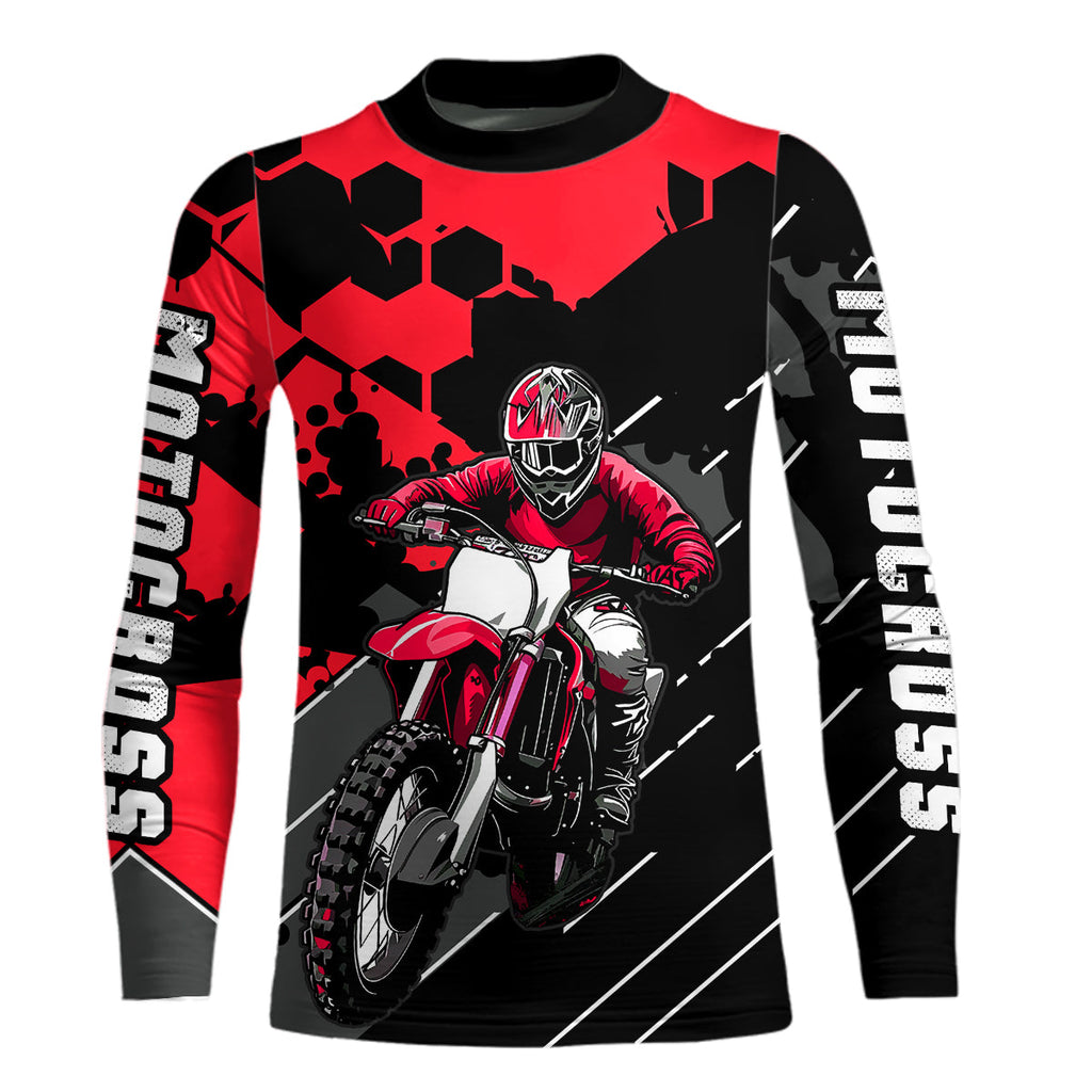 Maxcorners Motocross Racing Jersey Red Upf30+ Motorcycle Dirt Bike Jersey Off-Road Shirt Men Kid Women MT2709