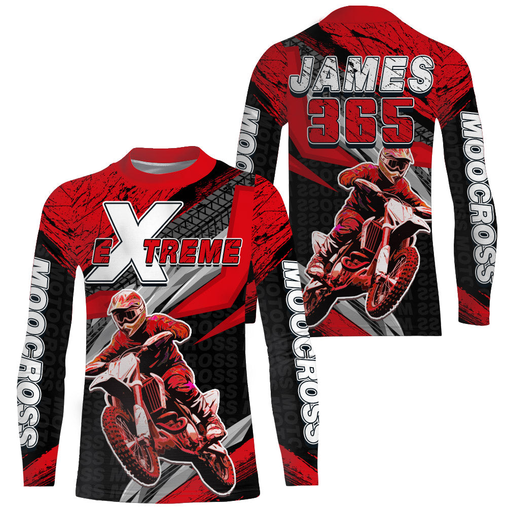 Maxcorners Motocross Racing Jersey Upf30+ Custom Dirt Bike Shirt Men Women Kid Red Off-Road MT2809