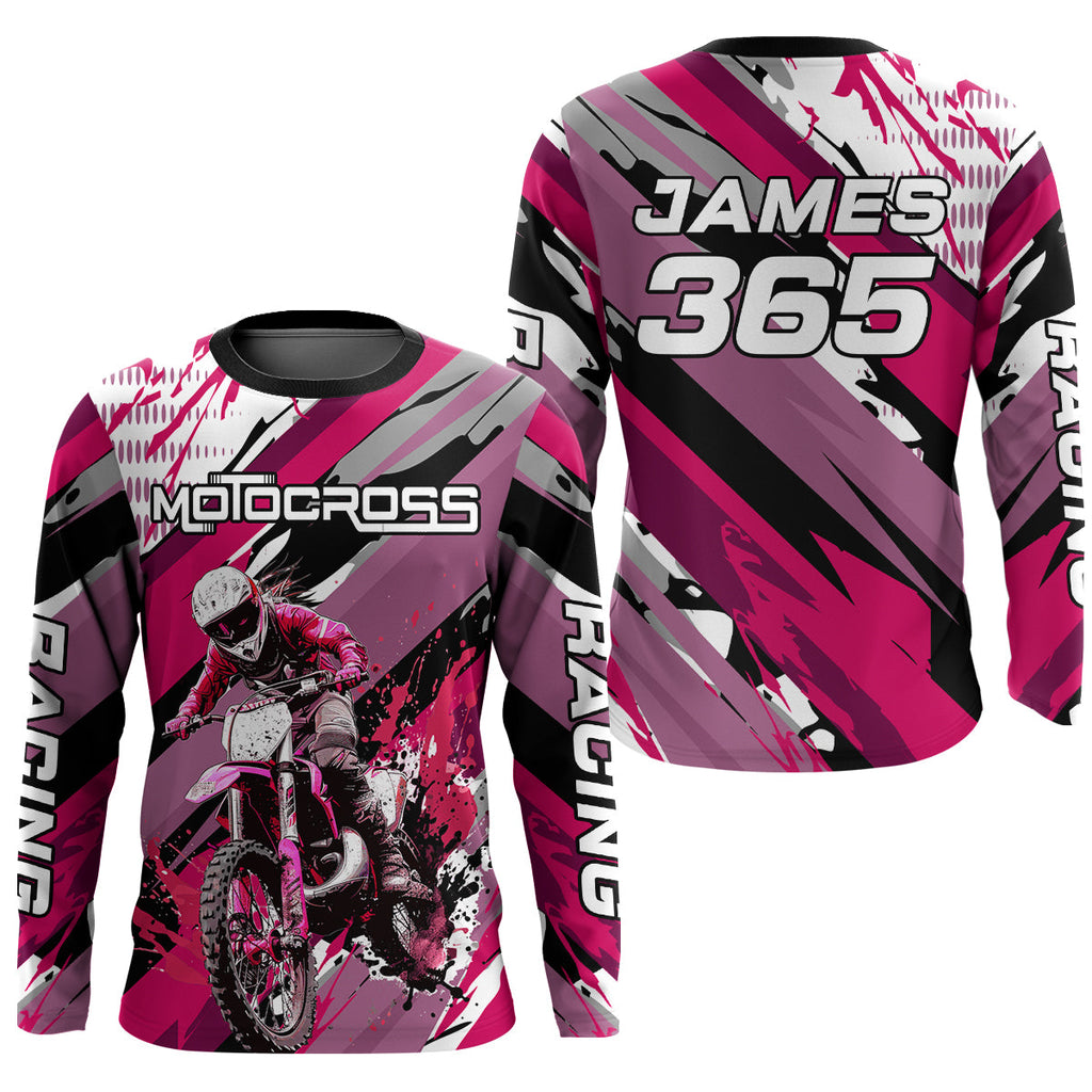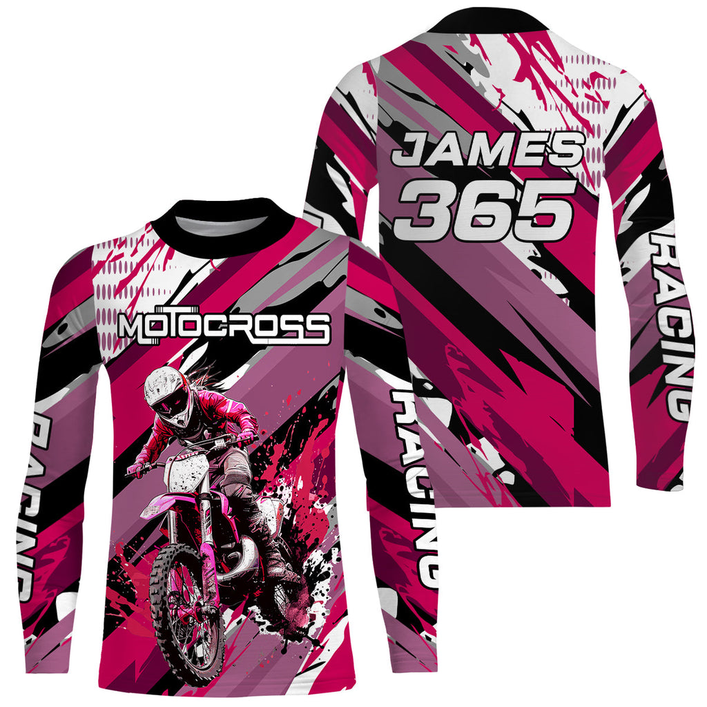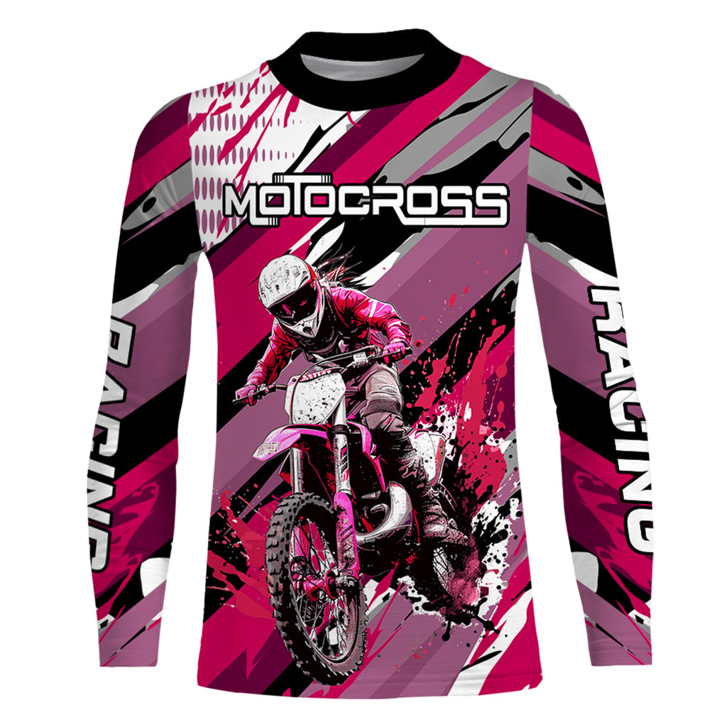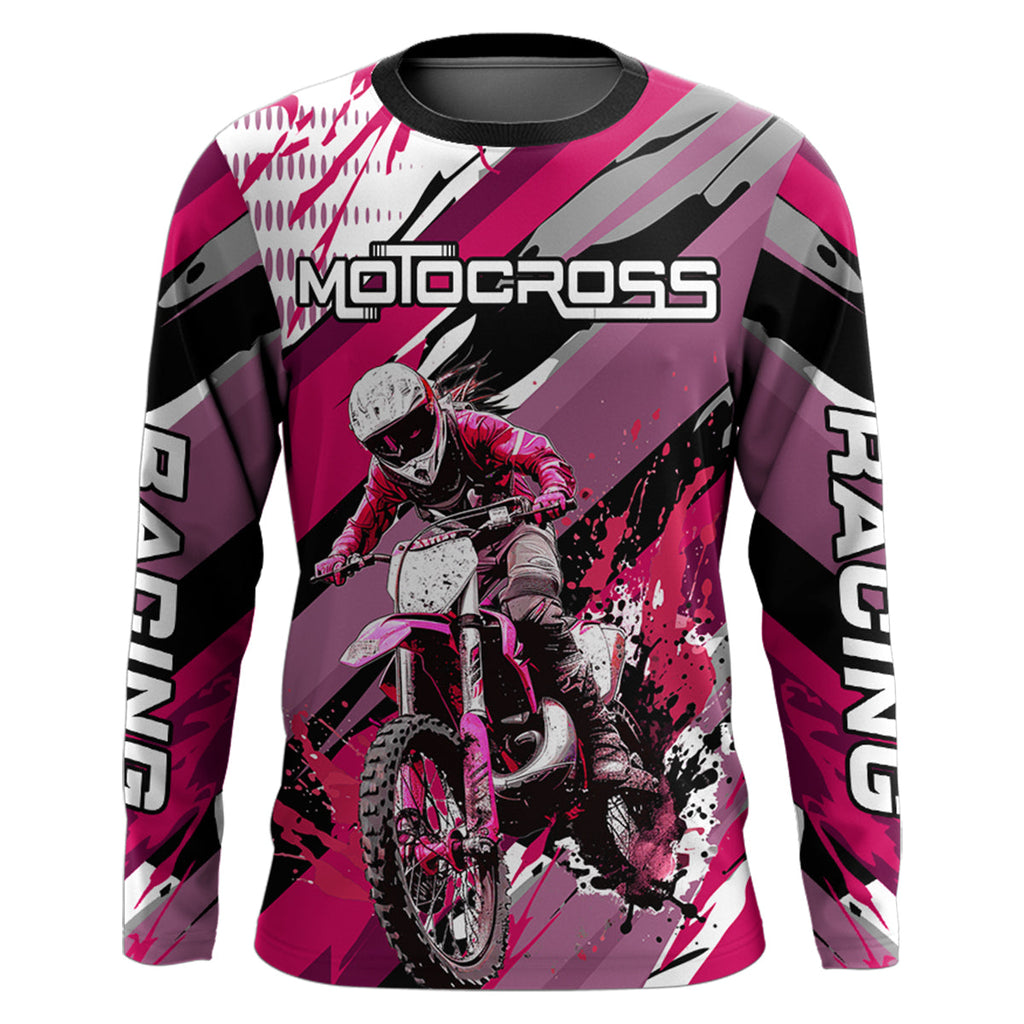 Maxcorners Pink Motocross Racing Jersey Women Kid Girl Upf30+ Dirt Bike Shirt Off-Road MX XM274 MT2809