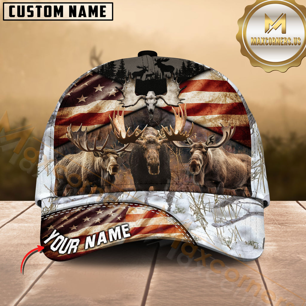 Maxcorners American Flag Moose Hunting Camo Multicolor Options Personalized Name 3D Cap