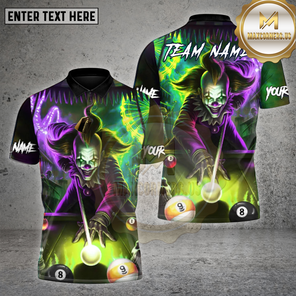 Maxcorners Billiards Neon Killer Joker Personalized Name, Team Name Unisex Shirt (4 Colors)