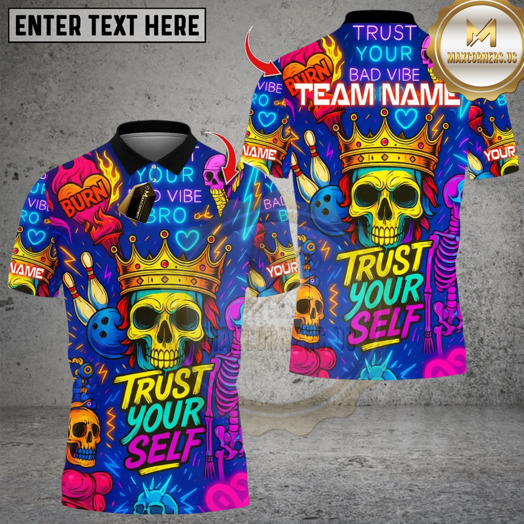 Maxcorners Bowling And Pins Neon Skull Vibes Personalized Name 3D Unisex Shirt