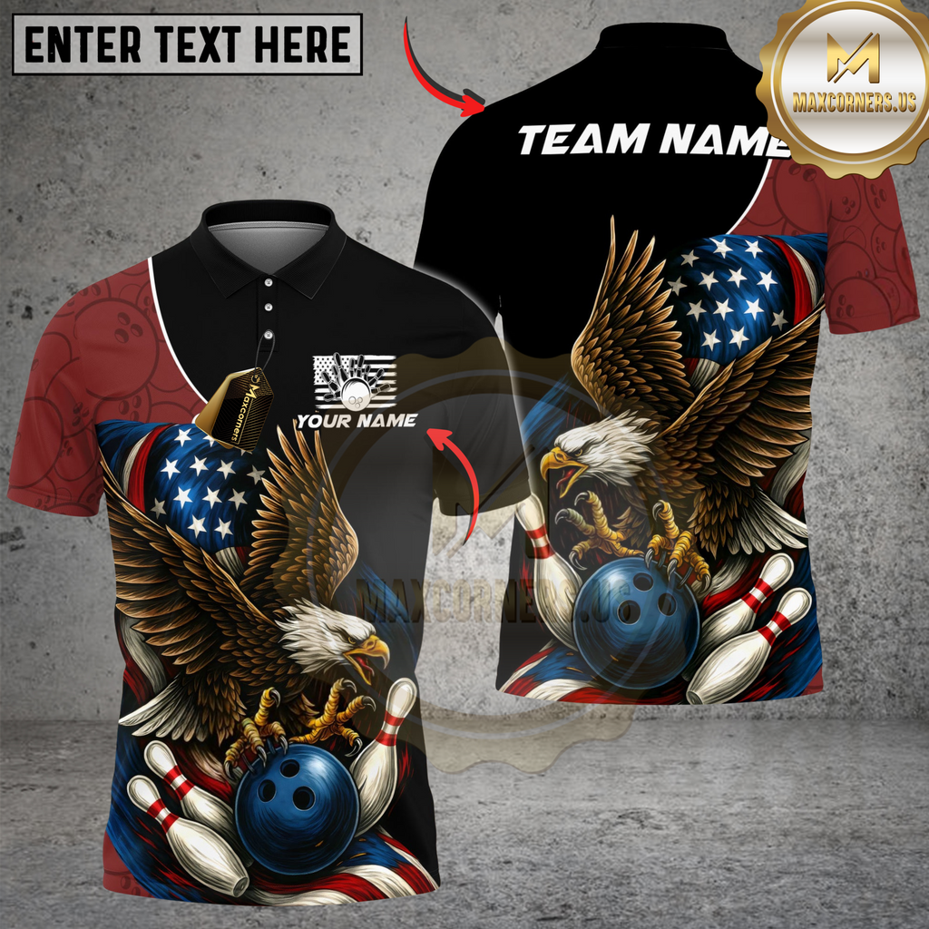 Maxcorners Bowling And Pins Patriot Eagle Flag Customized Name, Team Name 3D Shirt (4 Colors)