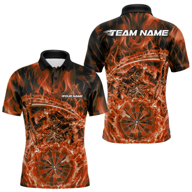 Maxcorners Custom Black And Orange Flame Grim Reaper Dart Team Men Polo Shirts, Halloween Otufit LM1610