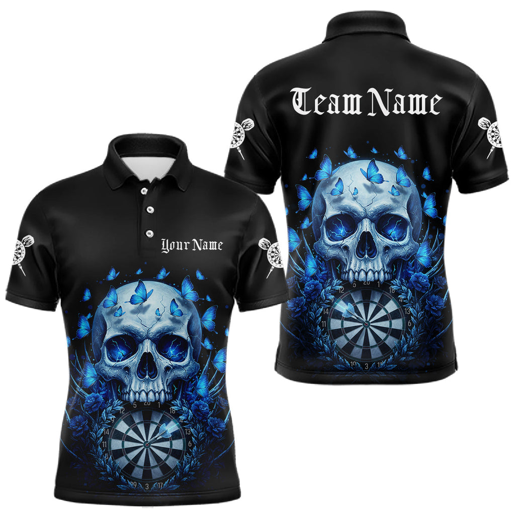 Maxcorners Custom Blue Butterflies Skull Head Flowers Dartboard Men Darts Polo Shirt, Dart Jerseys TU0411