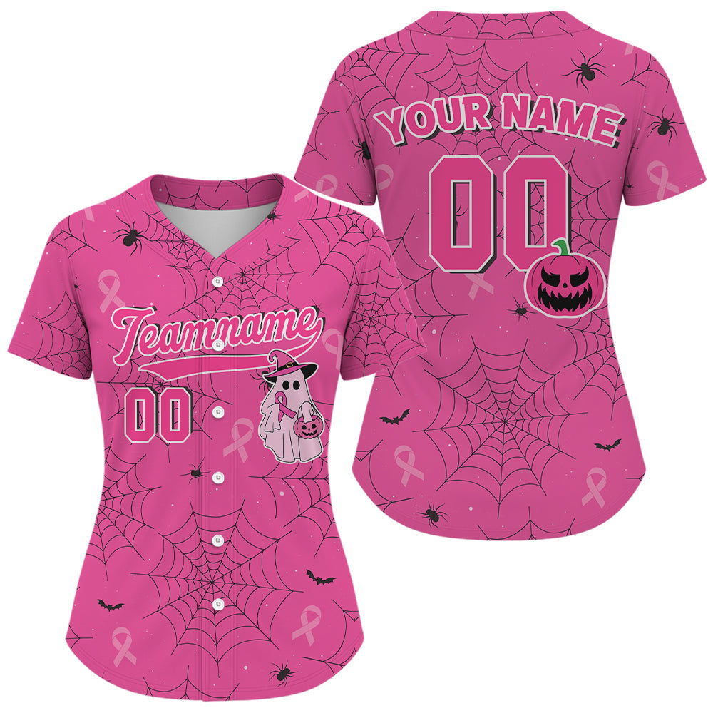 Maxcorners Custom Ribbon Pink Boo Halloween Baseball Shirt For Men Funny Baseball Jersey LM0910