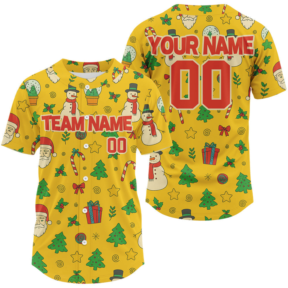 Maxcorners Custom Yellow Santa-Claus Christmas Baseball Shirt For Men Xmas Funny Baseball Jerseys LM0910