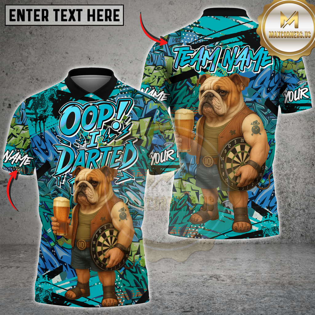 Maxcorners Darts Bulldog Graffiti Design Multicolor Customized Name, Team Name 3D Shirts