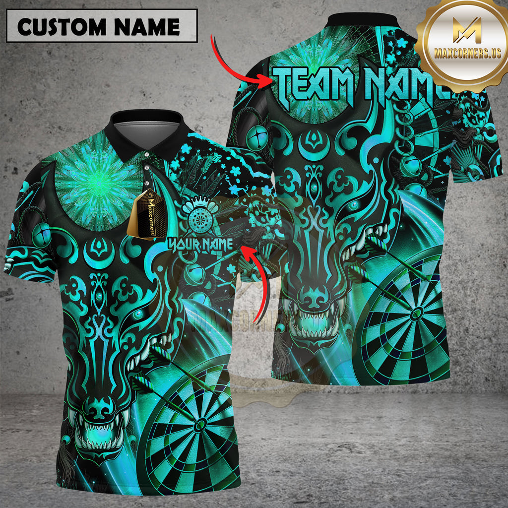 Maxcorners Darts Shirt Golden Wolf Dartboard Glow Multioptions Personalized Name, Team Name Unisex 3D Shirt (4 Colors)