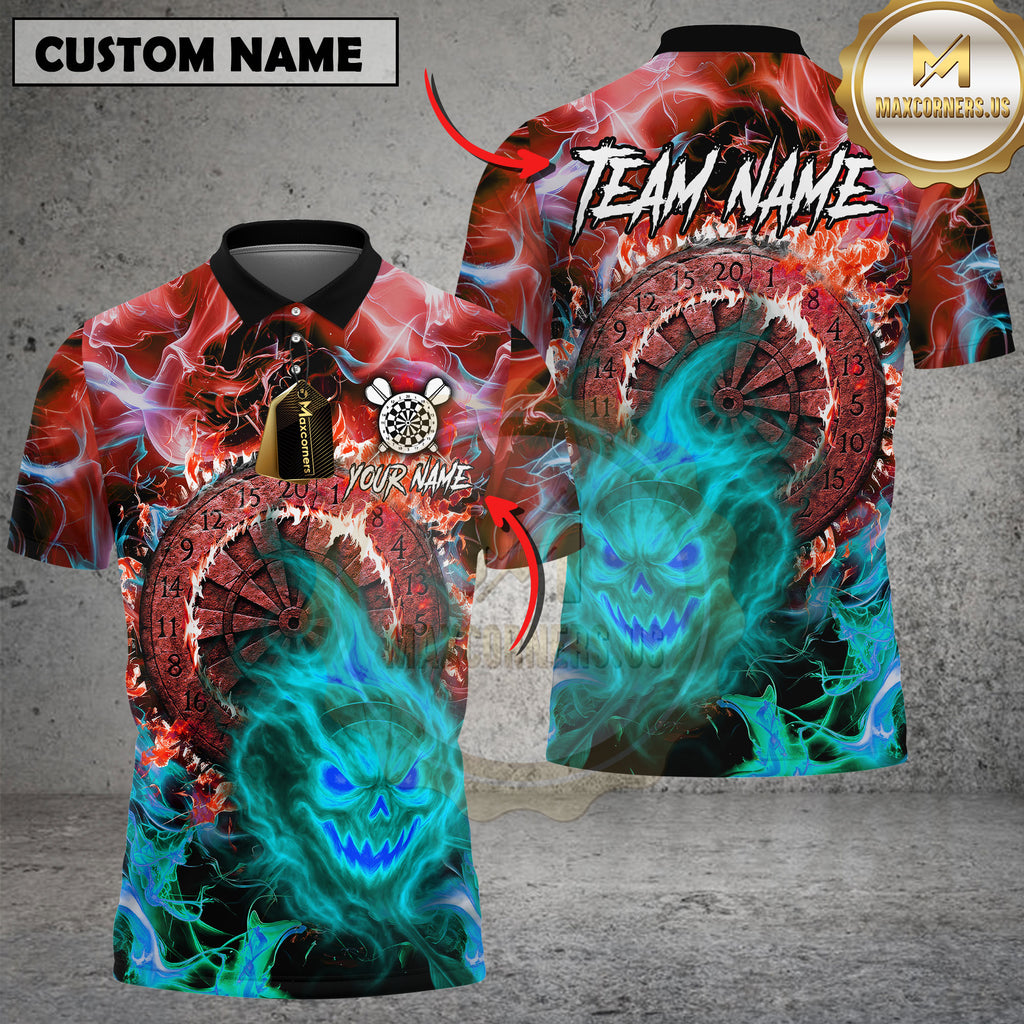 Maxcorners Dartboard Flaming Skull Lightning Multioptions Personalized Name, Team Name Unisex 3D Shirt (4 Colors)