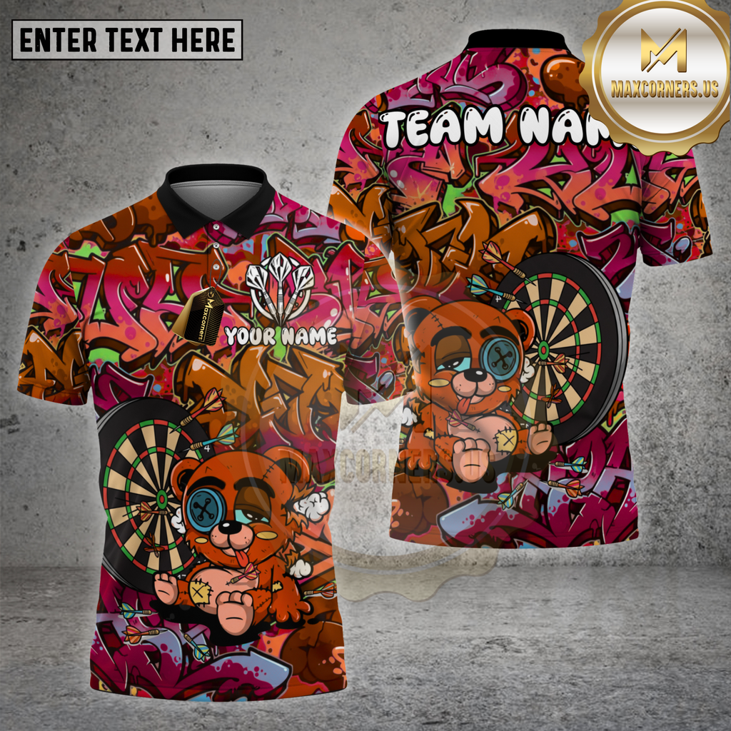 Maxcorners Darts Shirt Graffiti Relaxed Bear Target Multioptions Personalized Name, Team Name Unisex 3D Shirt (4 Colors)