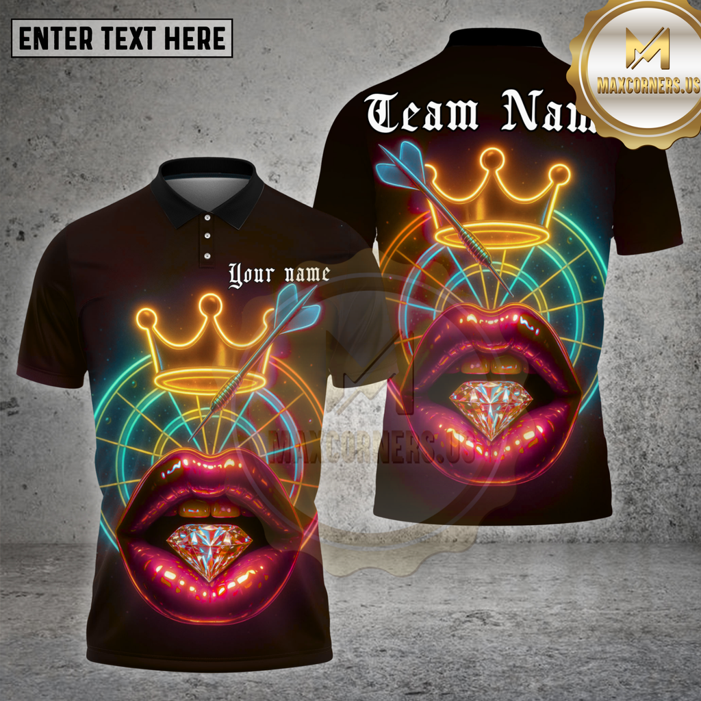 Maxcorners Darts Shirt Neon Lips Diamond Crown Multioptions Personalized Name, Team Name Unisex 3D Shirt (4 Colors)
