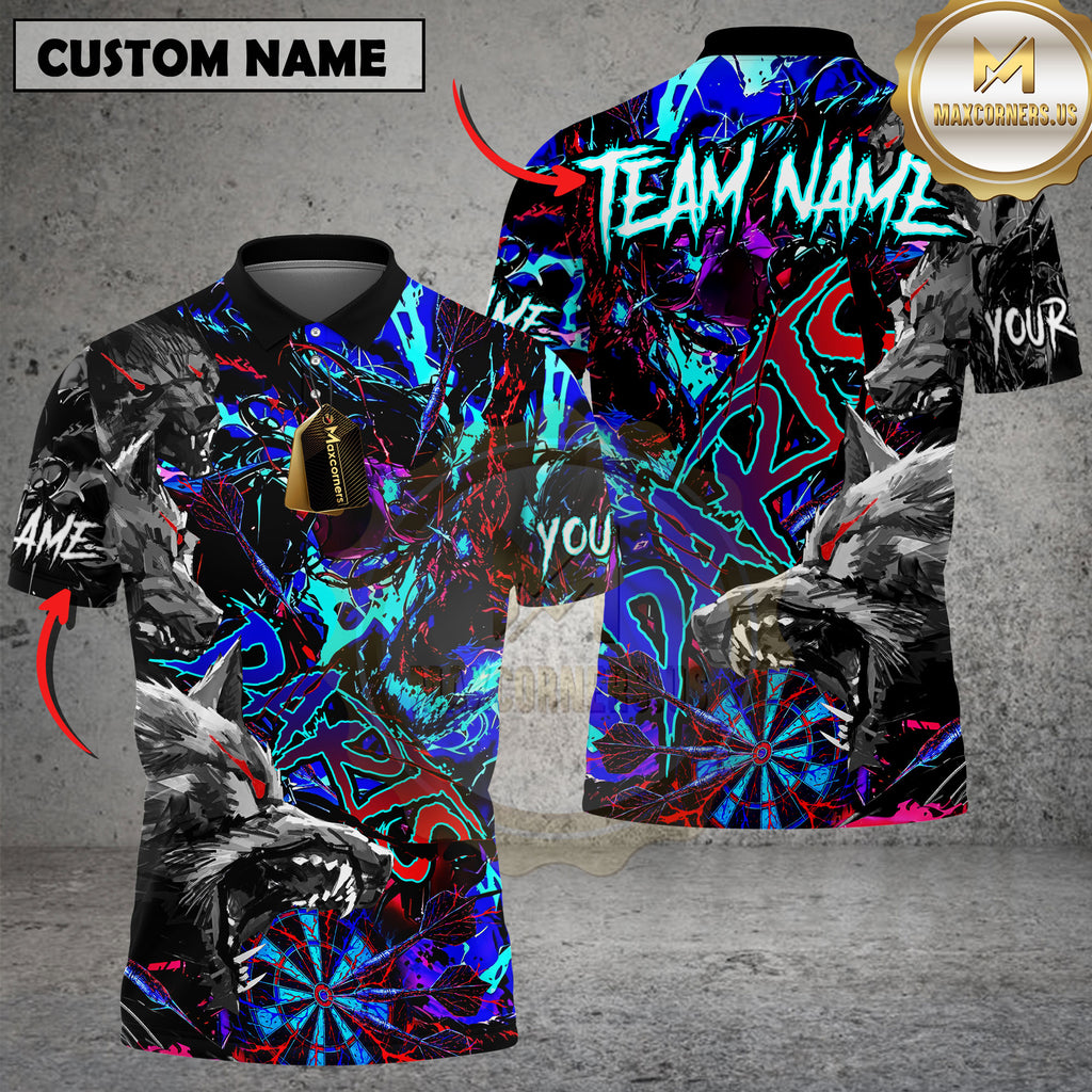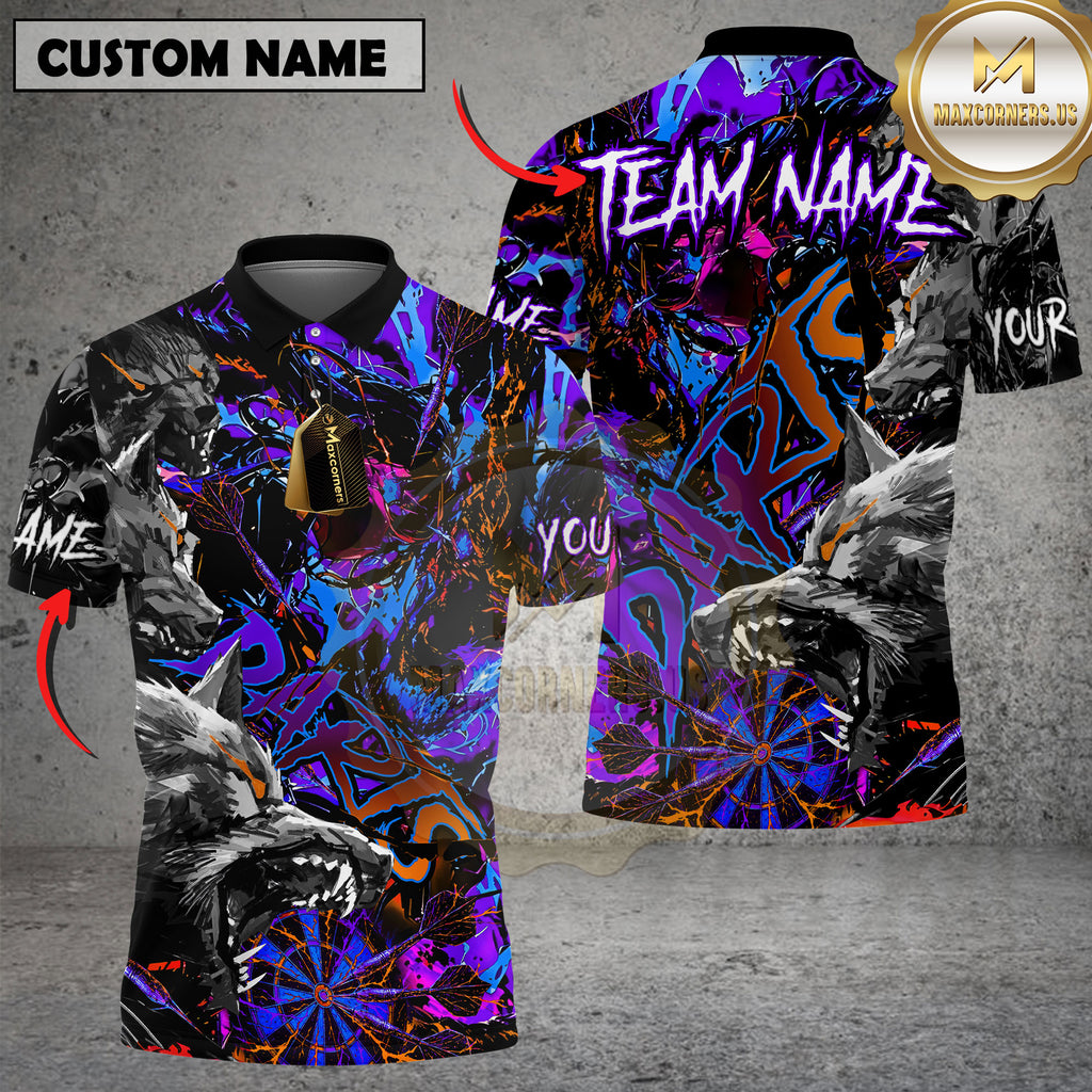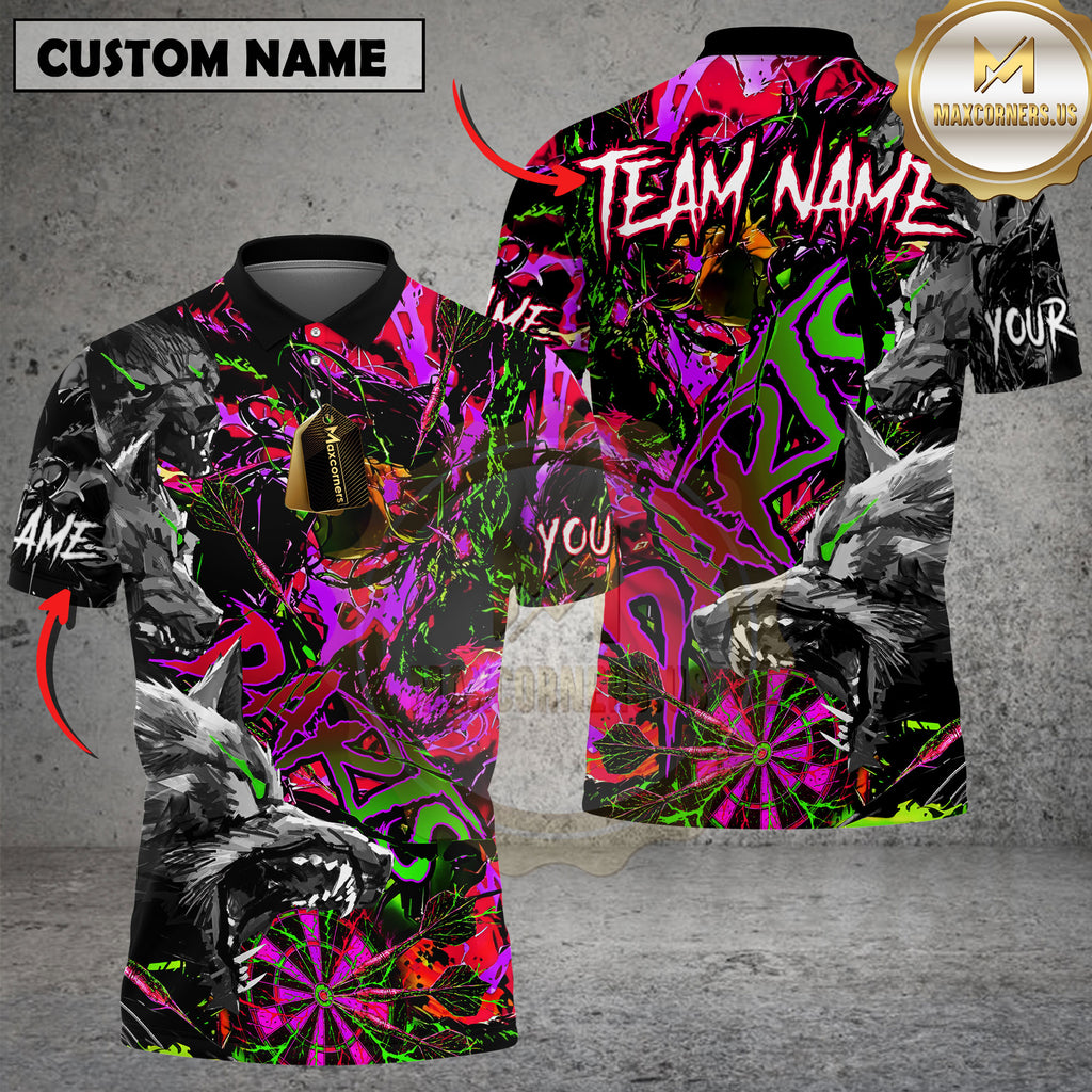 Maxcorners Darts Shirt Wolf Design Dark Graffiti Style Customized Name, Team Name 3D Shirt
