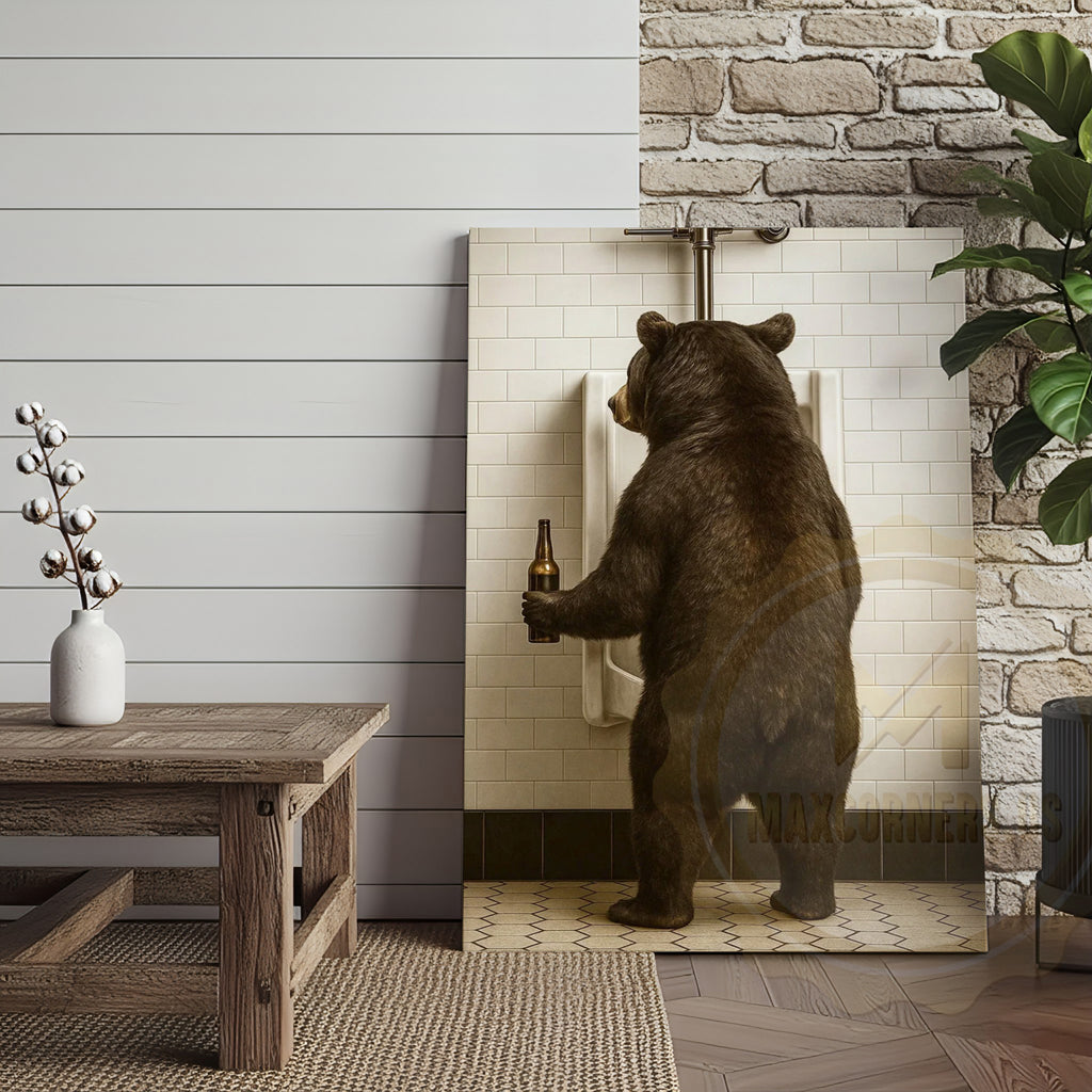 Maxcorners Funny Bear In Bathroom With Beer Rustic Lodge Art Wrapped Canvas