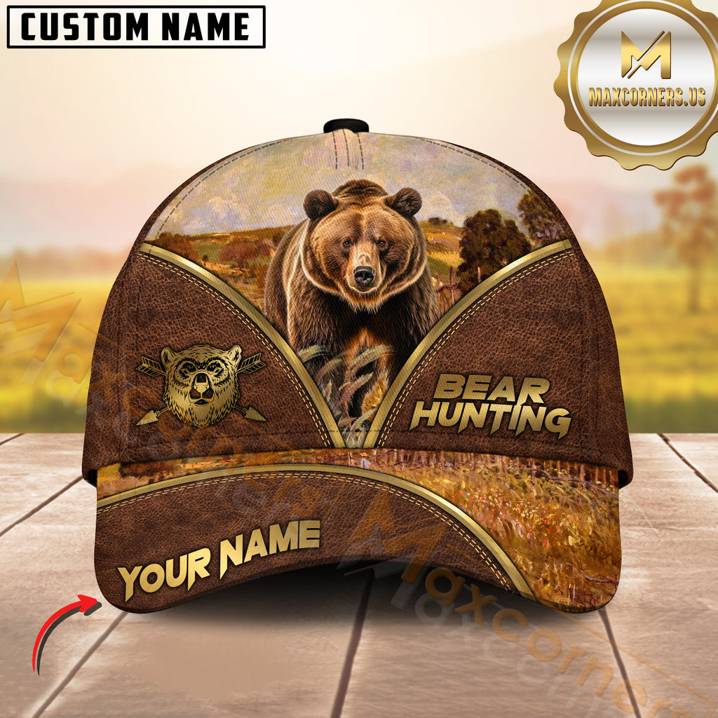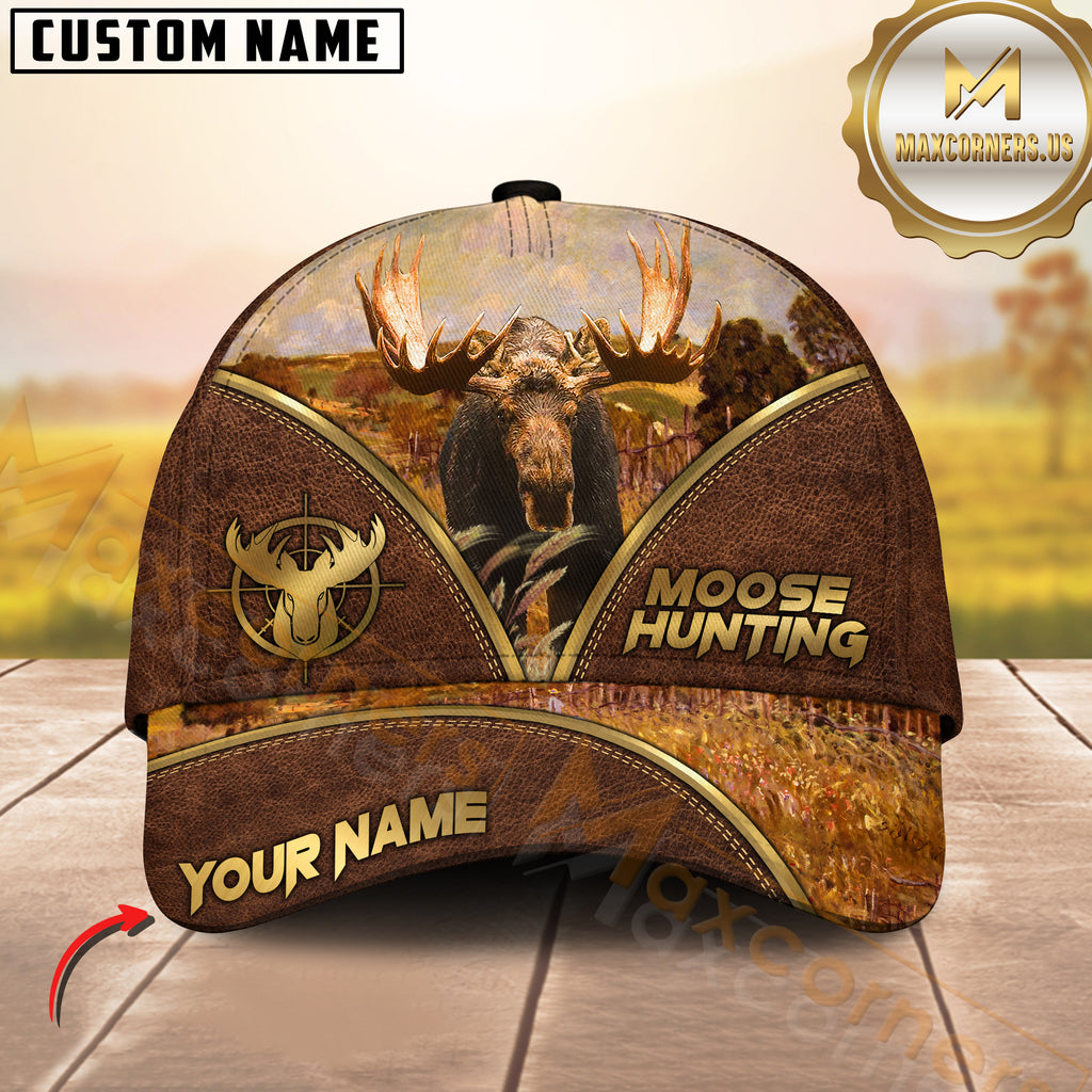 Maxcorners Hunting Brown Leather Style Multicolor Options Personalized Name 3D Cap